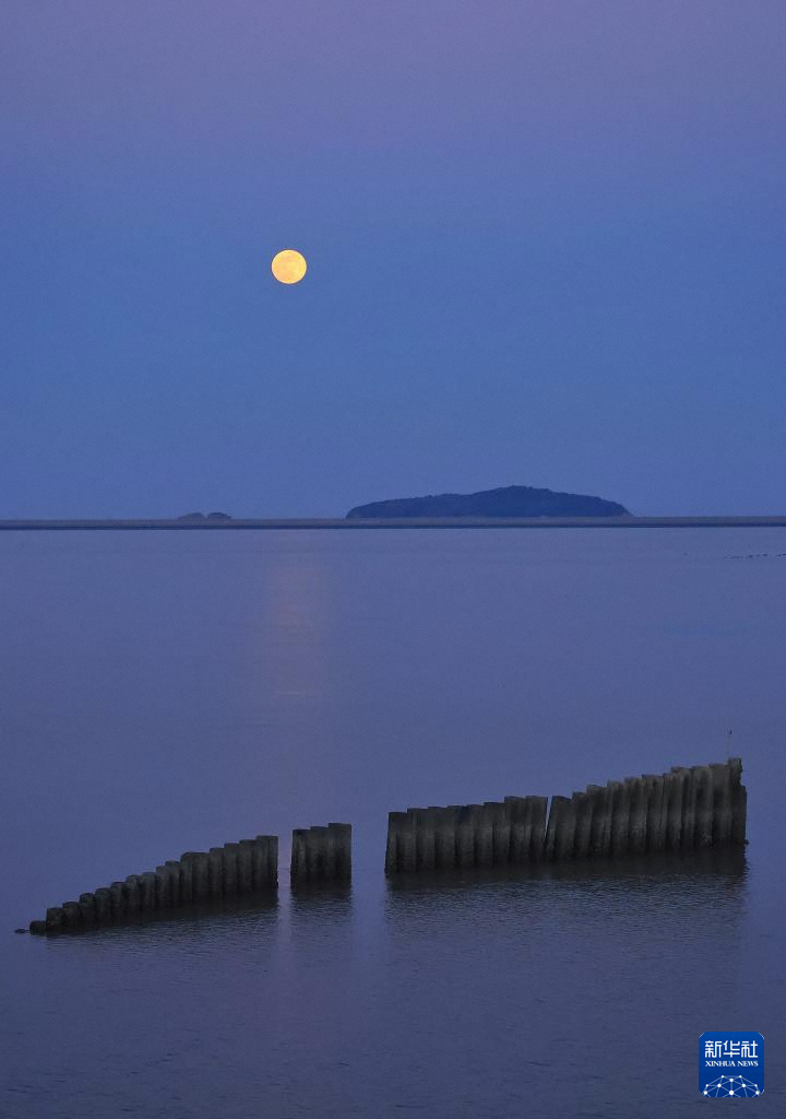 1月3日在浙江省舟山市梁横岛拍摄的月亮。