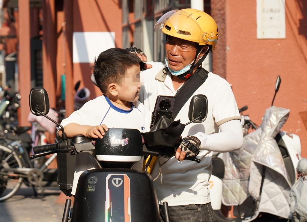 送餐回来的孟世祥陪伴孩子玩耍(2025年7月22日摄)。新华社记者 张晨霖 摄