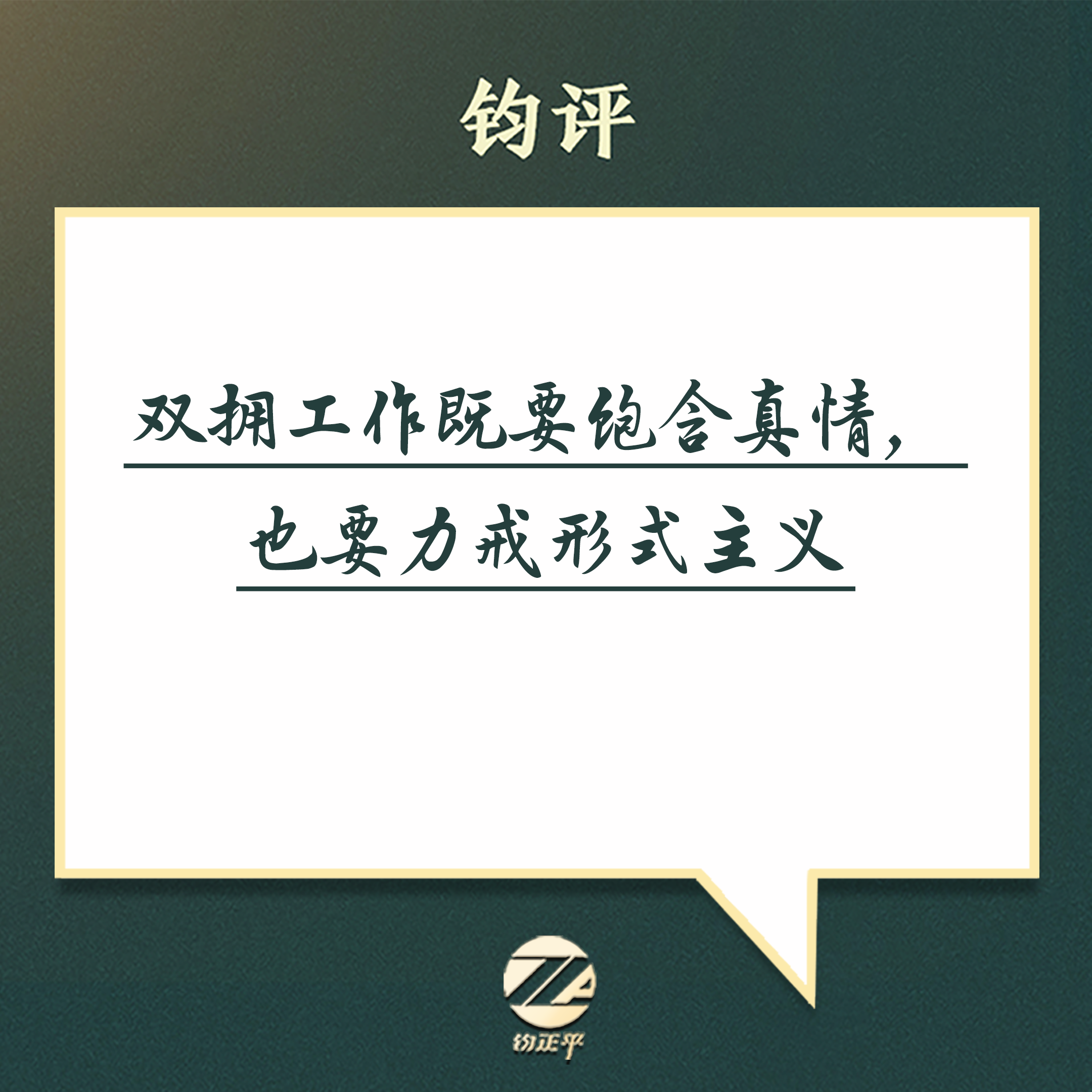近日,三部门联合印发通知,就做好新年春节期间拥军优属、拥政爱民工作作出部署。在节日前后深入开展形式多样、富有温度的“双拥”活动,是我们党和军队长期以来形成的宝贵传统。回首革命岁月,人民子弟兵与广大群众生死相依、命运与共,取得一场又一场胜利。当前,全军部队正全力以赴向着攻坚百年目标奋进,值此关键年终岁尾,军地各级以优良作风扎实做好“双拥”工作,必将极大催生全军官兵的热情,在攻坚百年中展新貌、树新风。“双拥”是我党我军一项充满真情饱含感情的优良传统,无论是谋划惠民生的实事,还是开展暖兵心的活动,都须倾注真情、务实推进,杜绝“走过场”式的慰问,力戒“表面文章”。只有以好的作风传承好的传统,才能使“双拥”之花常开不败,让军政军民团结之基日益坚实、历久弥坚。