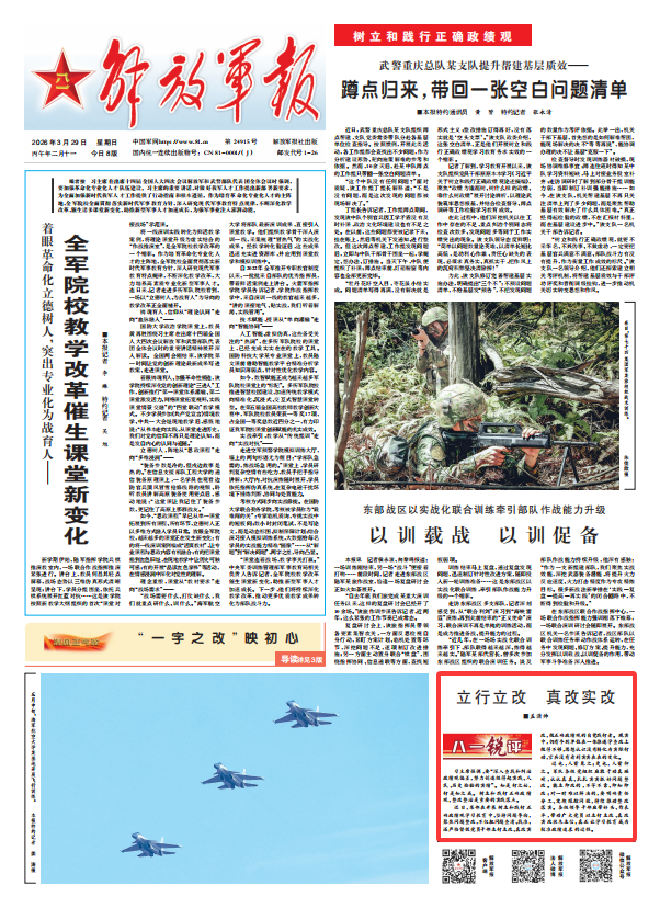 过也,人皆见之;更也,人皆仰之。军队各级党组织应敢于动真碰硬,认认真真、扎扎实实抓好问题整改。能立即改的,不等不靠、即知即改;对一时难以解决的,要明确责任分工、定期跟踪问效,持续推动整改落实。各级领导干部应带好头、作表率,带动广大党员以立行立改、真改实改徙木立信,真正让学习教育成为校准政绩追求的过程。