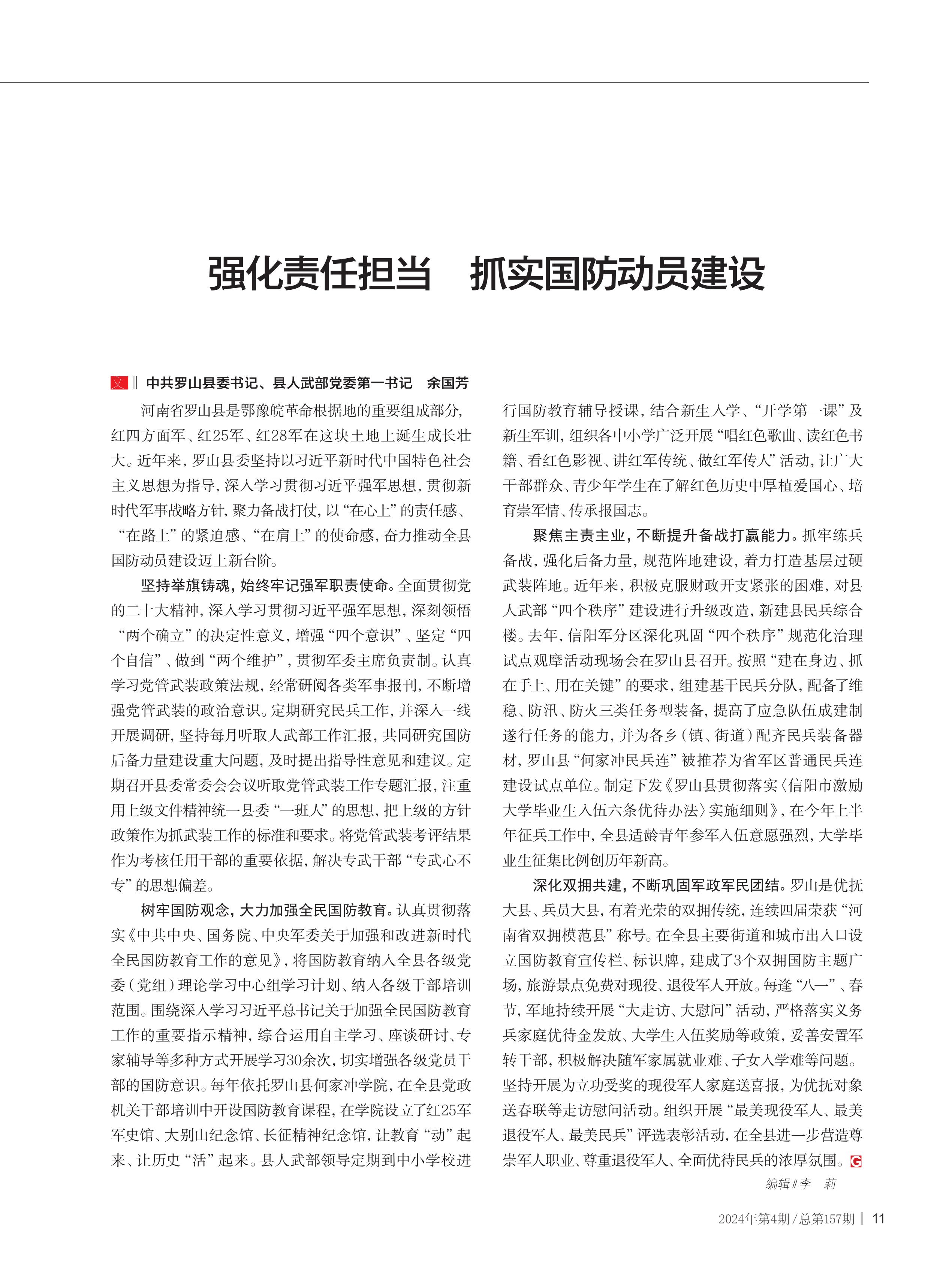 作者:中共罗山县委书记 县人武部党委第一书记 余国芳