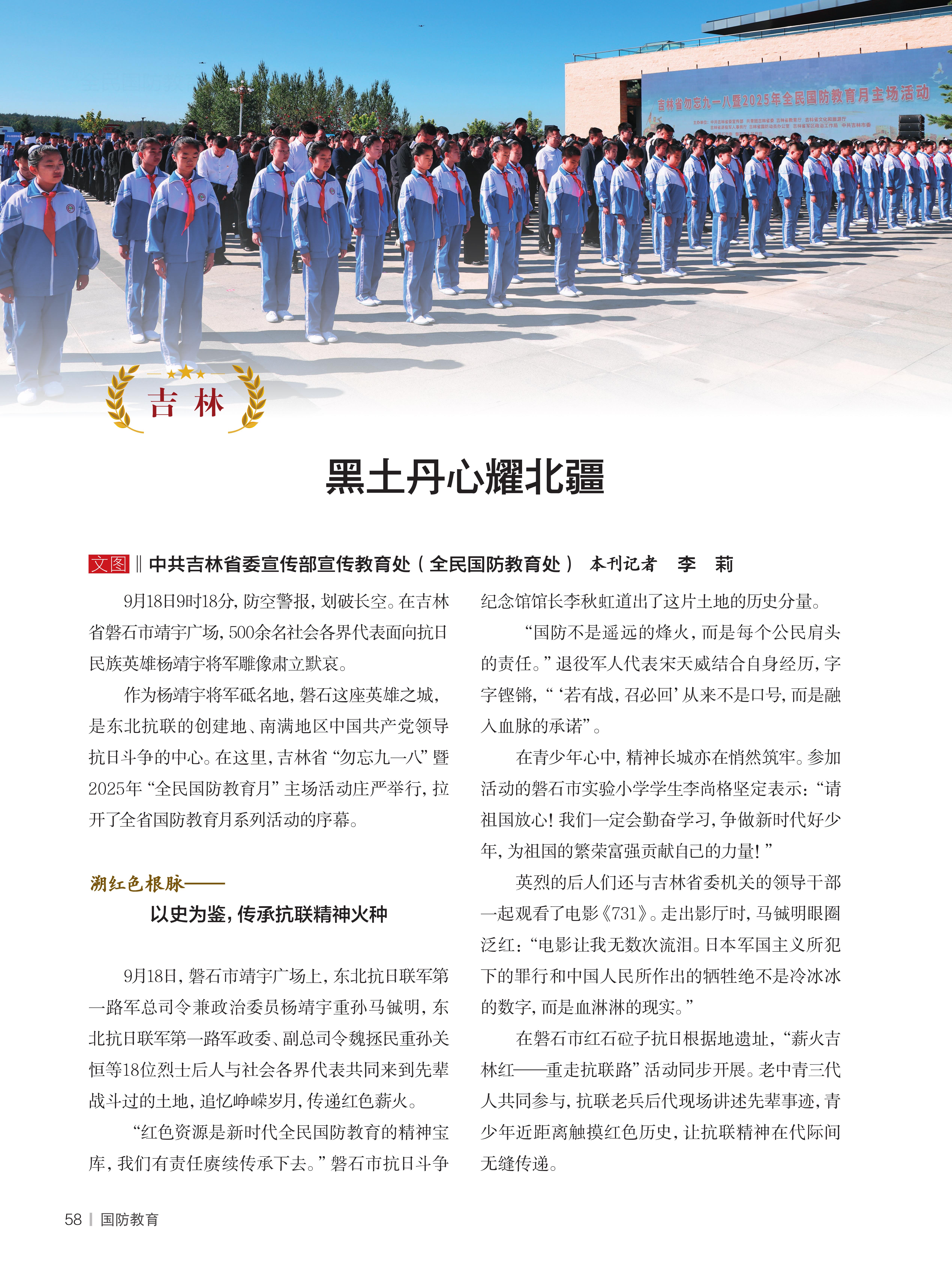 作者:中共吉林省委宣传部宣传教育处(全民国防教育处) 本刊记者 李 莉
