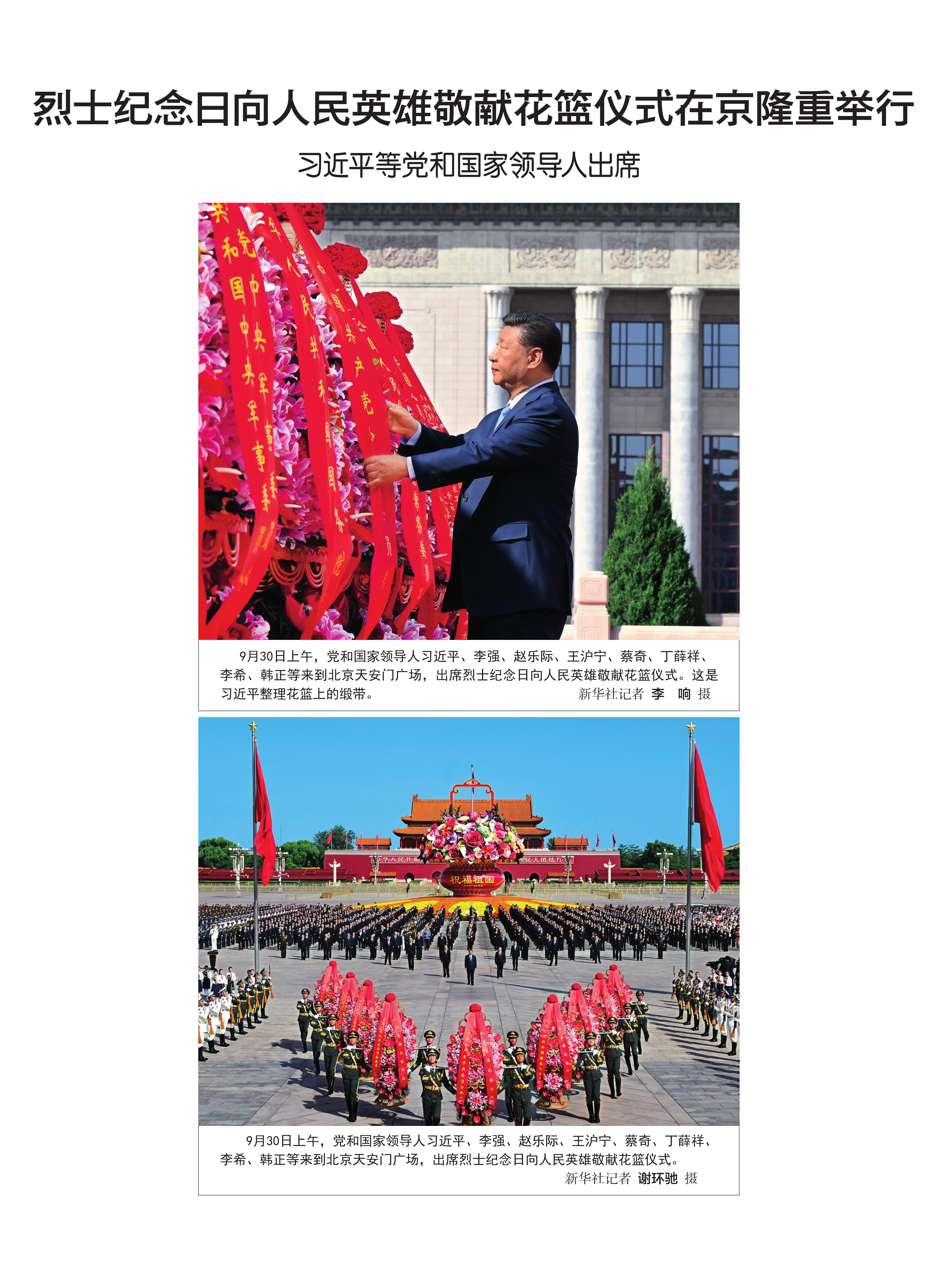 烈士纪念日向人民英雄敬献花篮仪式在京隆重举行