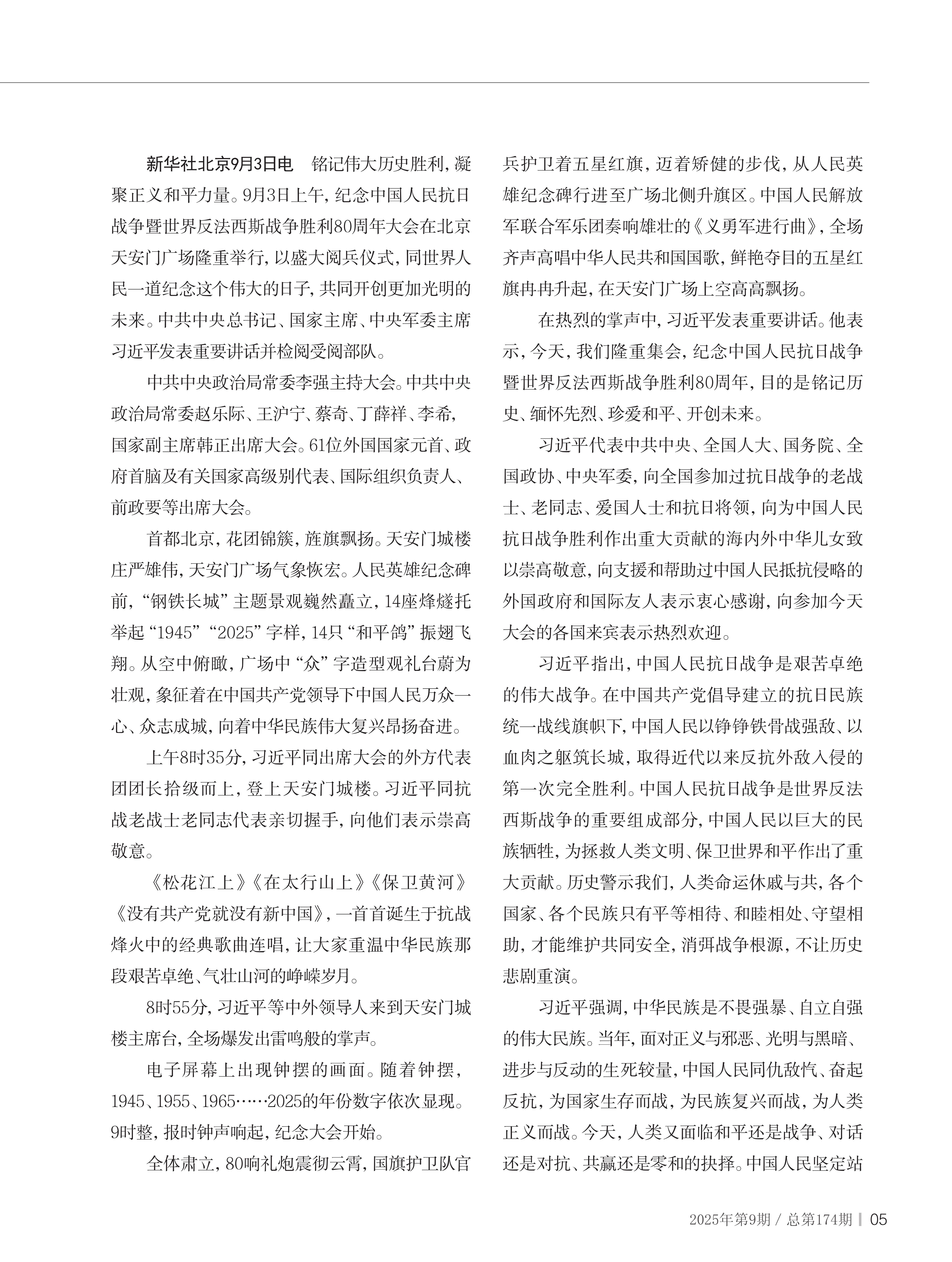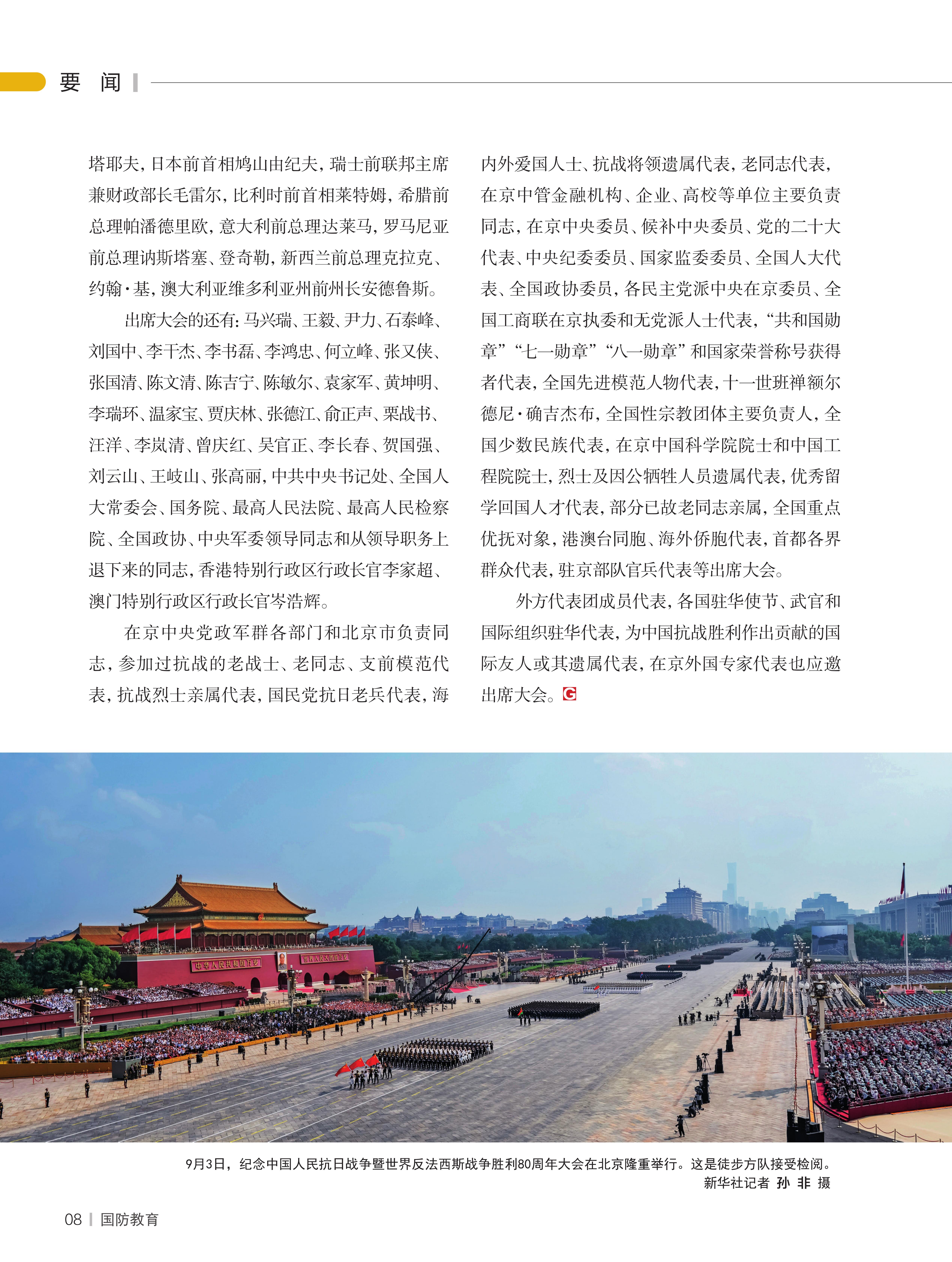 纪念中国人民抗日战争暨世界反法西斯战争胜利80周年大会在京隆重举行