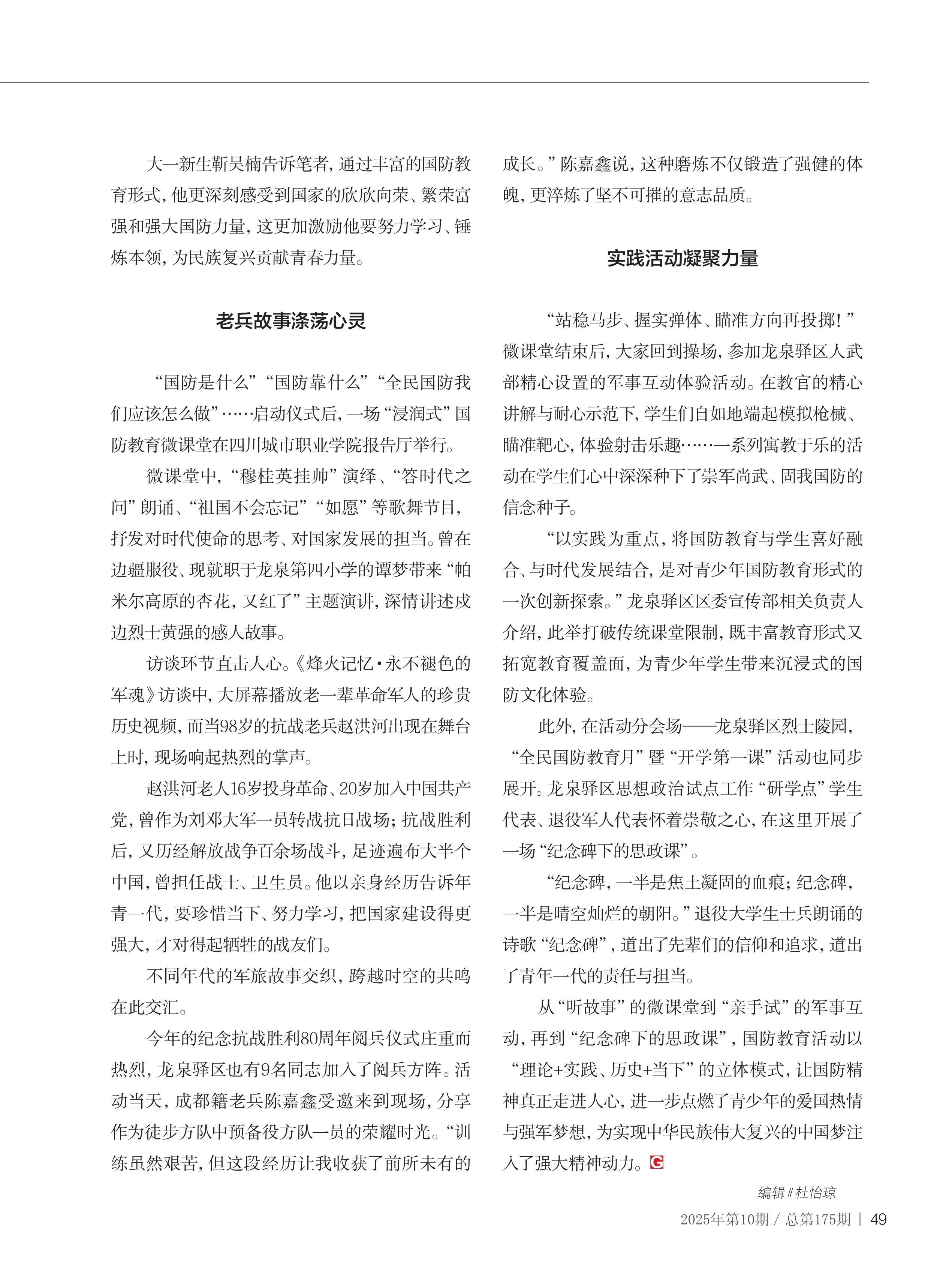 四川省成都市龙泉驿区以“启航国防梦 铸就强国魂”为主题组织“开学第一课”活动——
