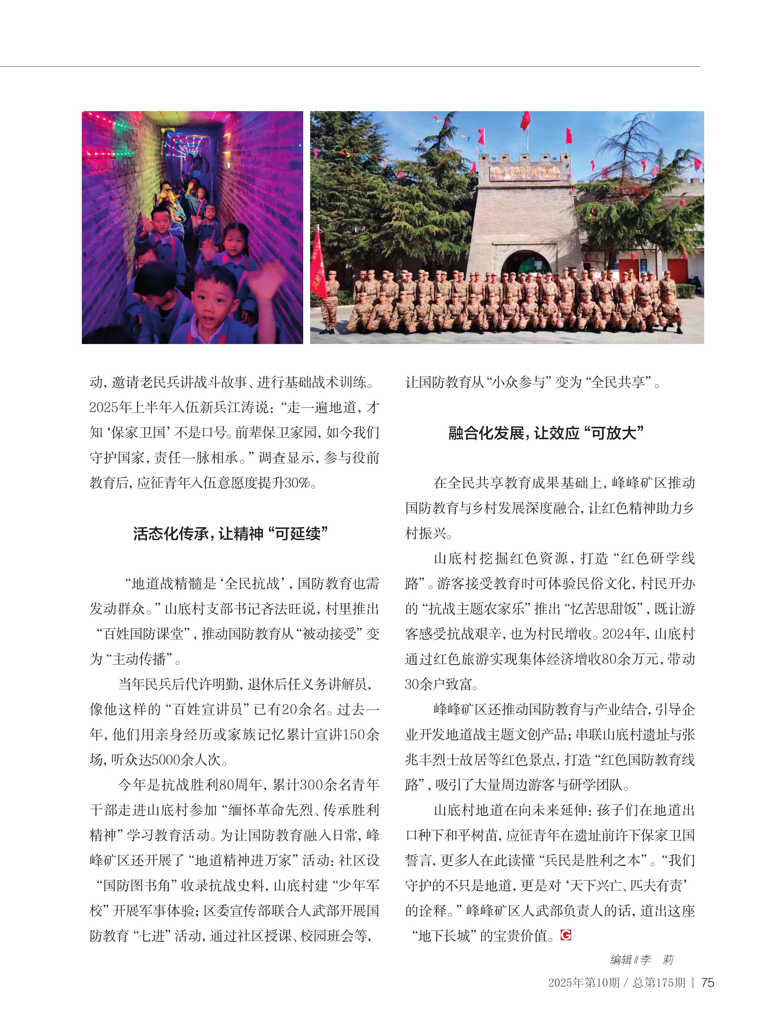 ——邯郸市峰峰矿区利用山底村地道战遗址开展国防教育纪实