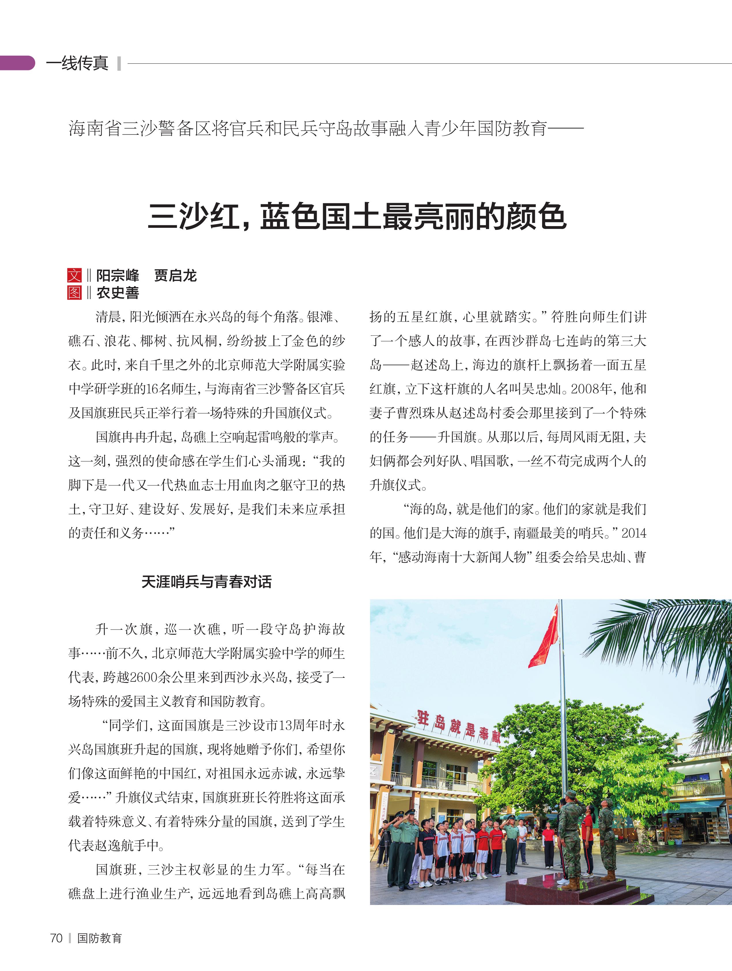 海南省三沙警备区将官兵和民兵守岛故事融入青少年国防教育——