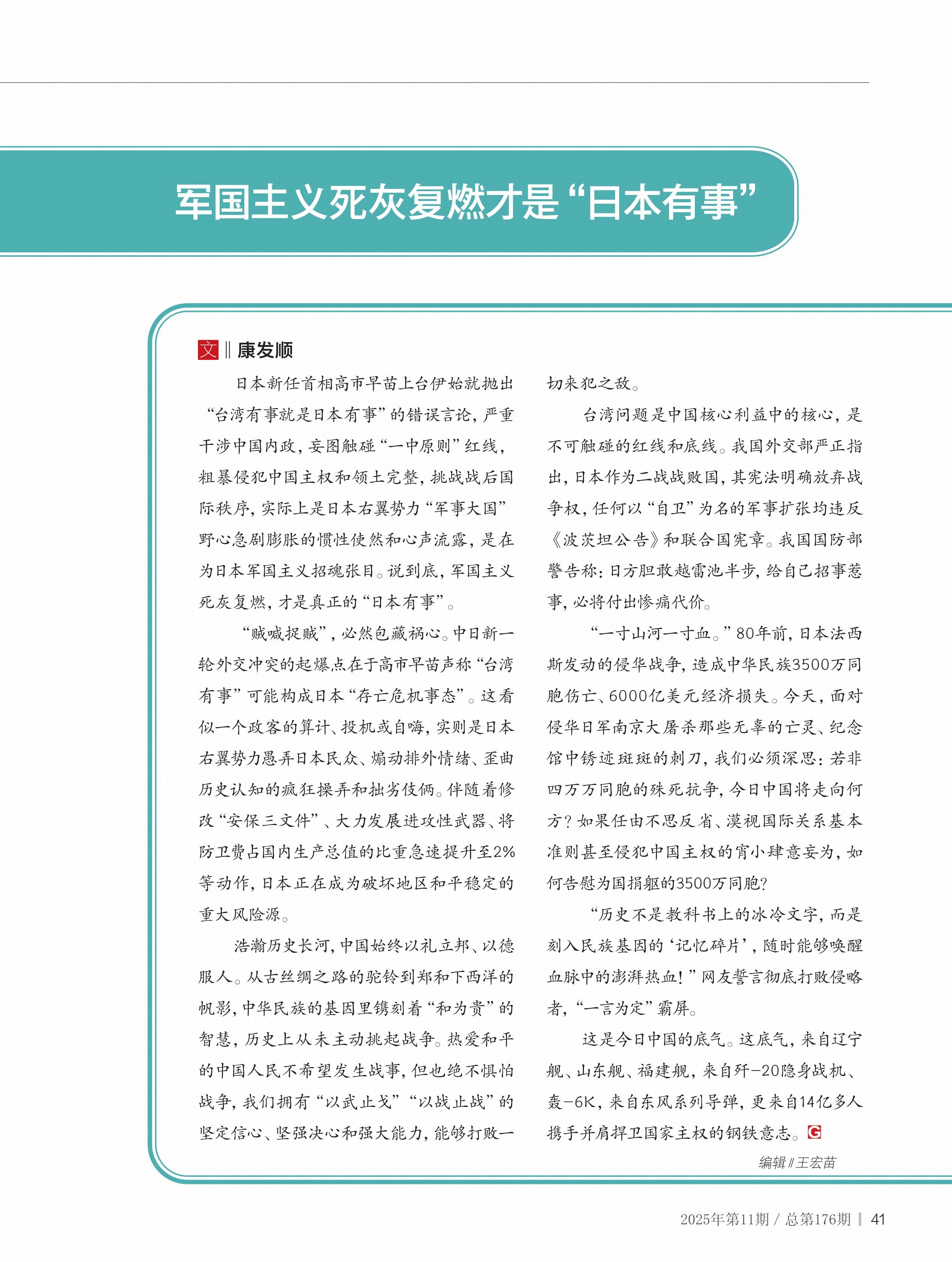 军国主义死灰复燃才是“日本有事”