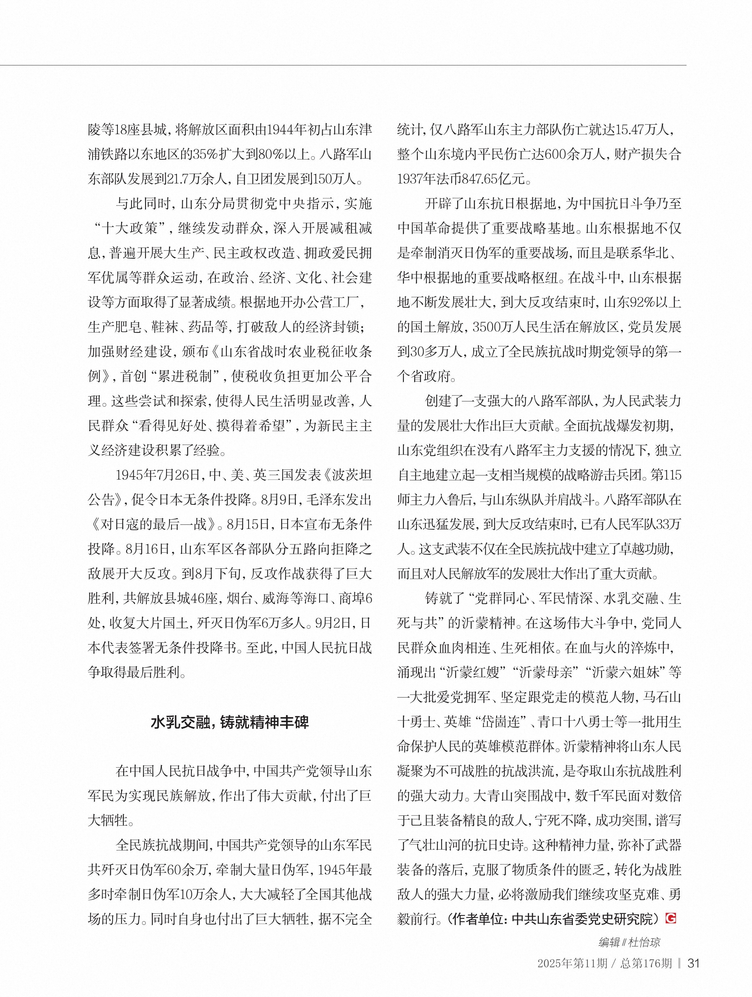 山东军民抗战的壮阔史诗