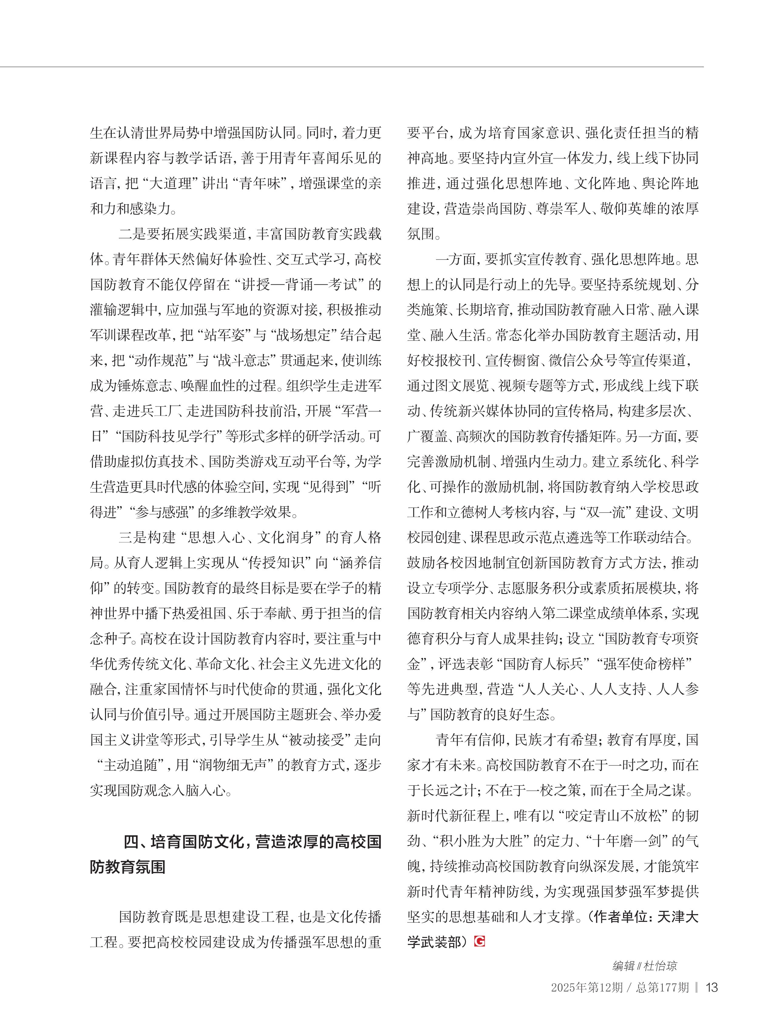 着力提升高校国防教育质效