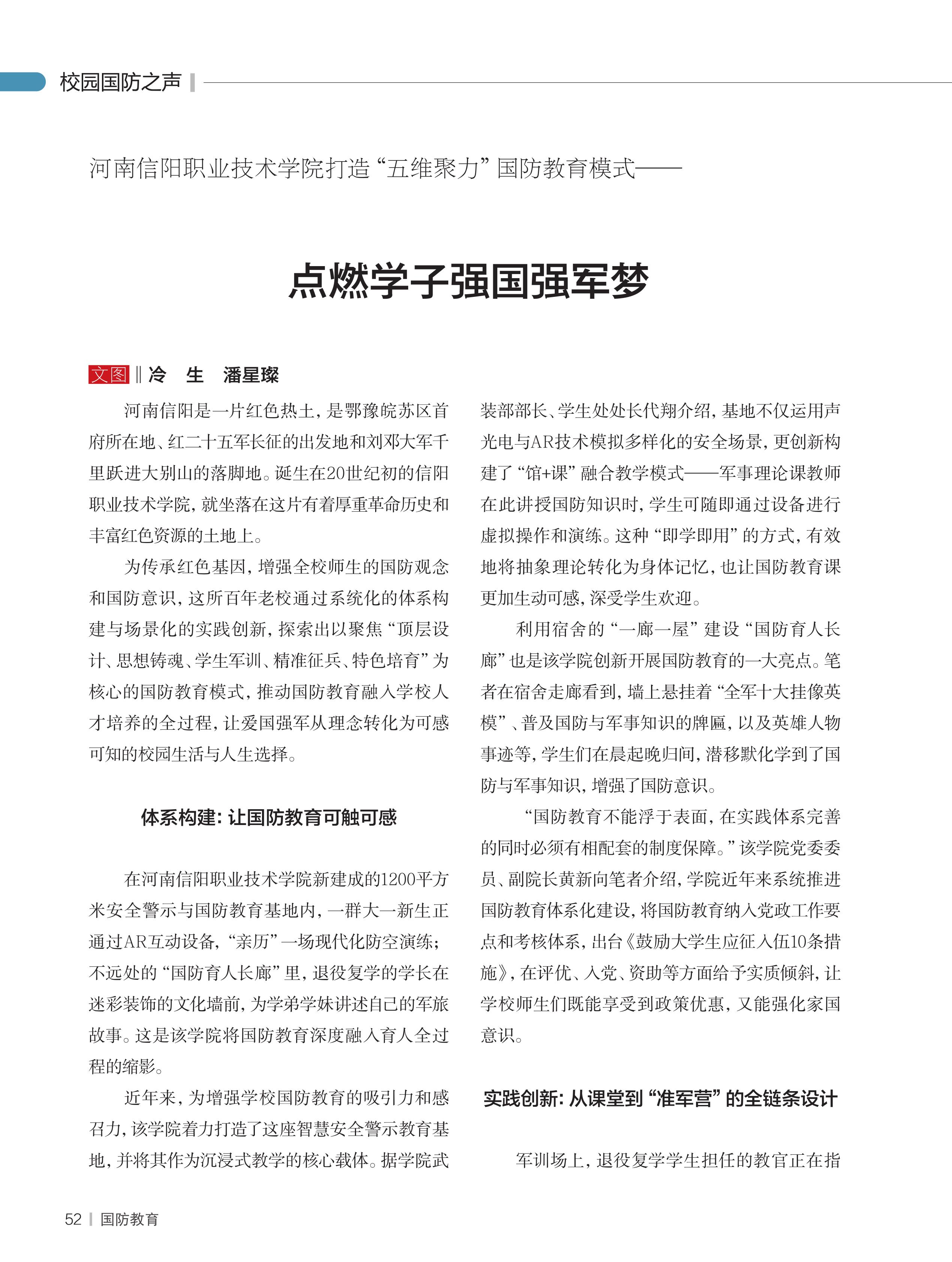 河南信阳职业技术学院打造“五维聚力”国防教育模式——