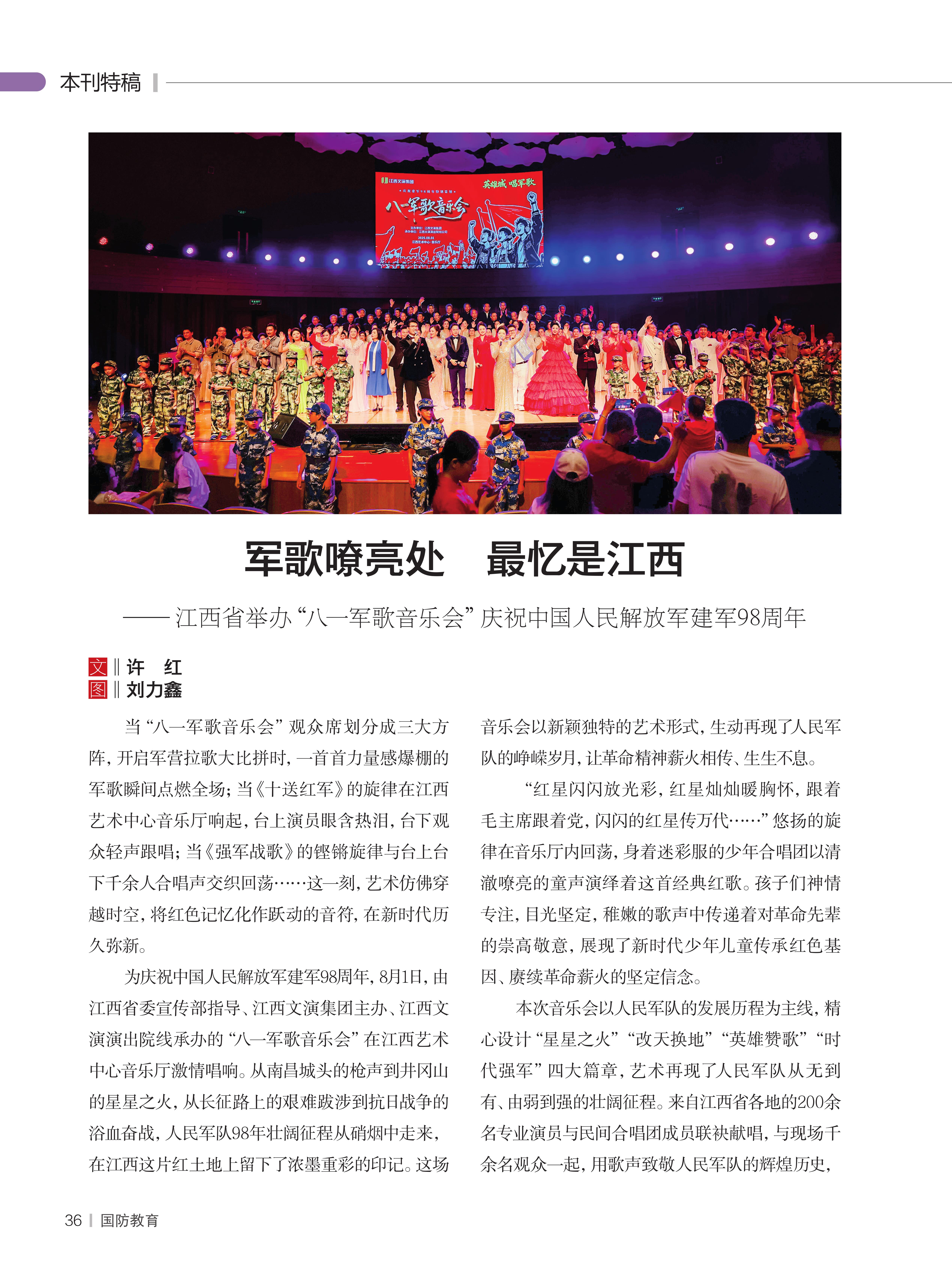 ——江西省举办“八一军歌音乐会”庆祝中国人民解放军建军98周年