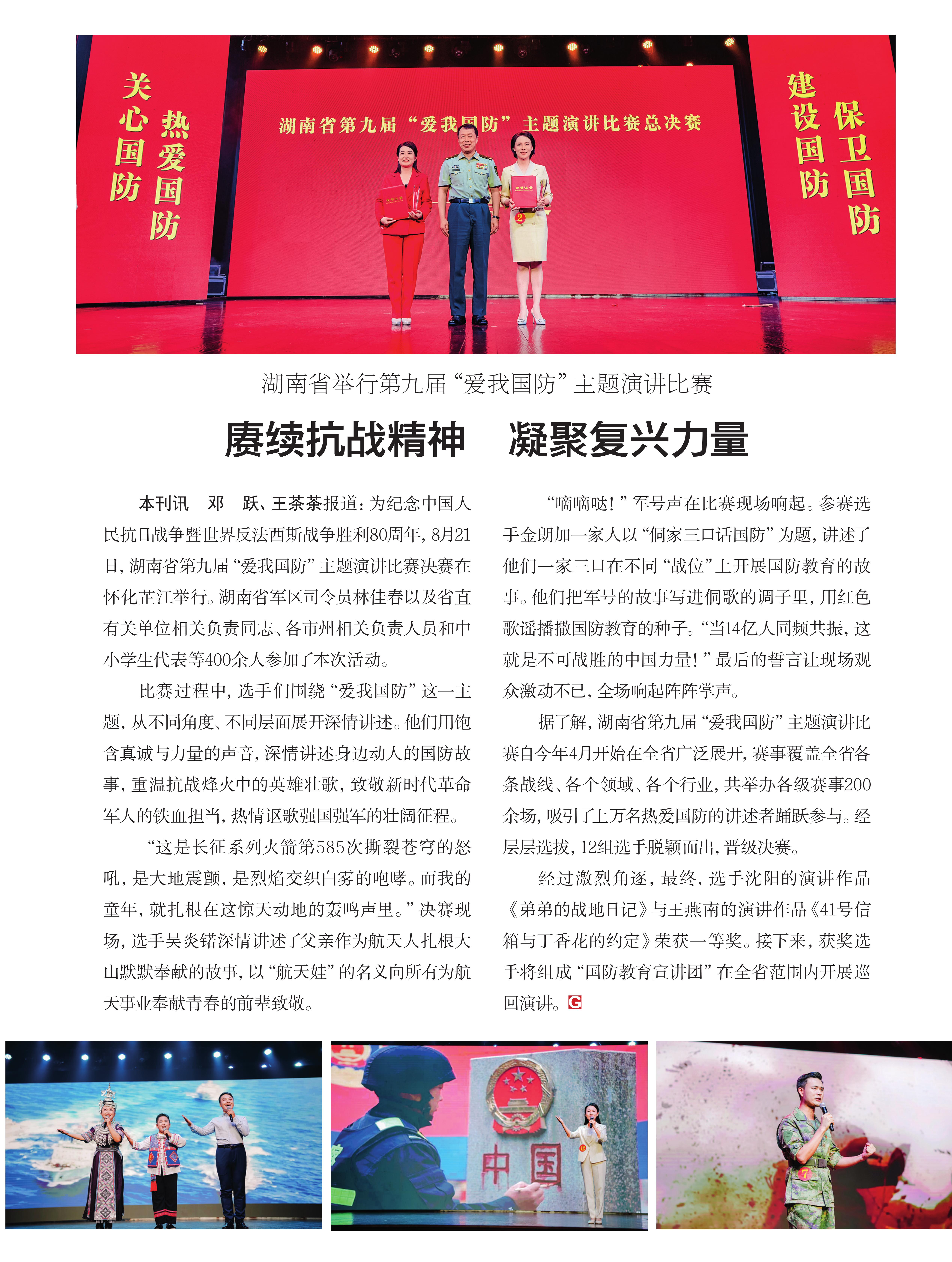 湖南省举行第九届“爱我国防”主题演讲比赛