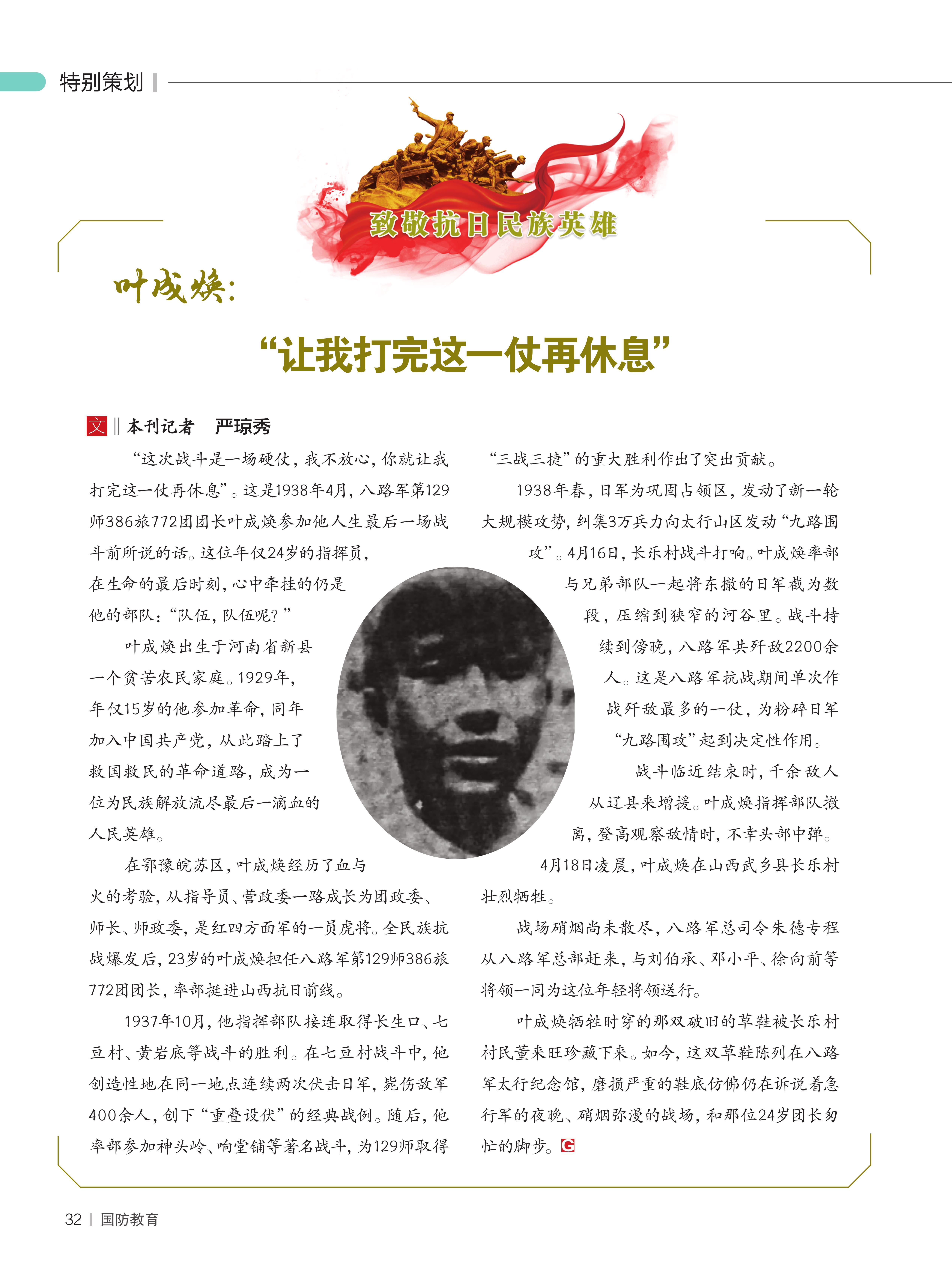叶成焕:“让我打完这一仗再休息”