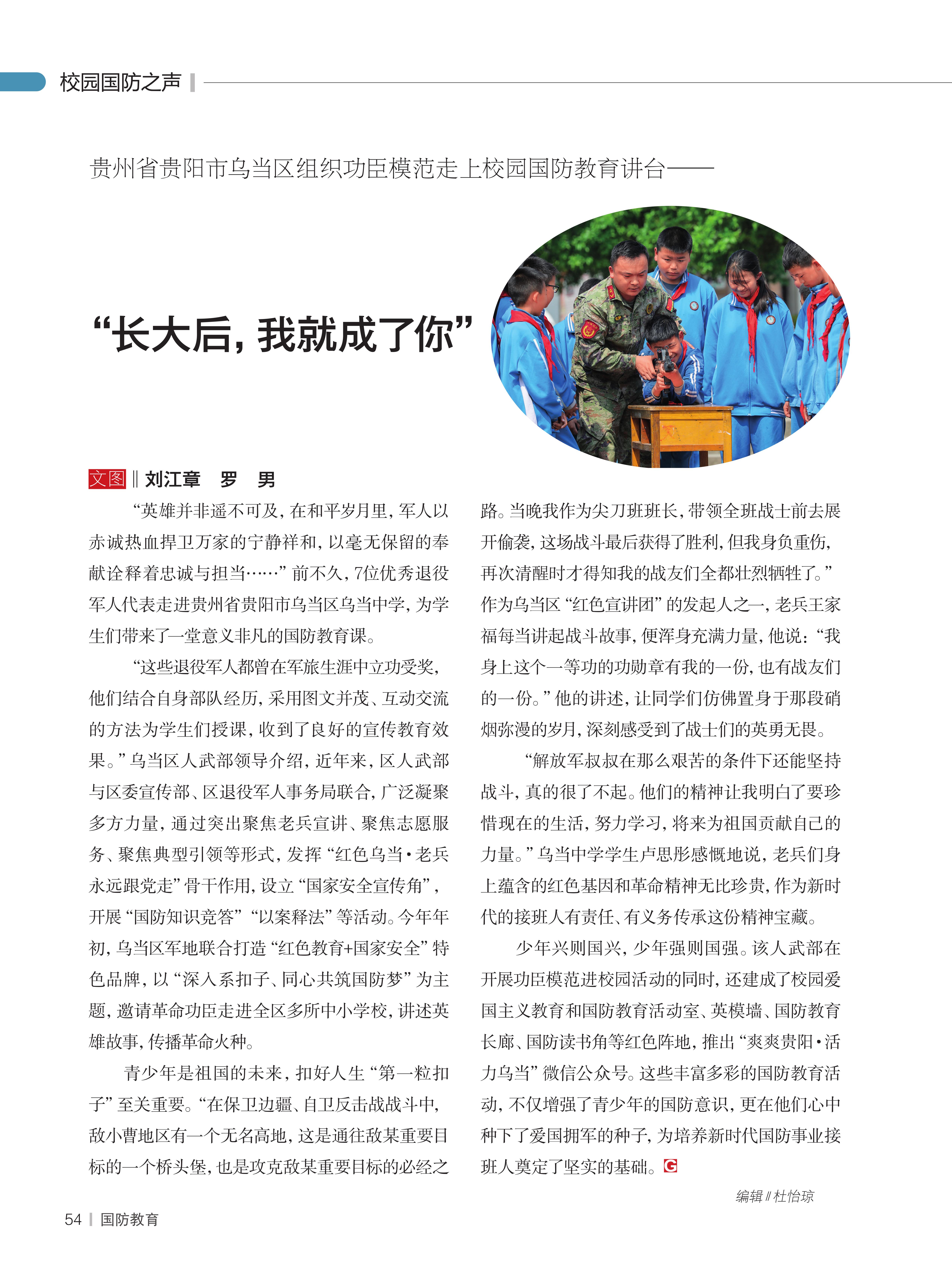 贵州省贵阳市乌当区组织功臣模范走上校园国防教育讲台——
