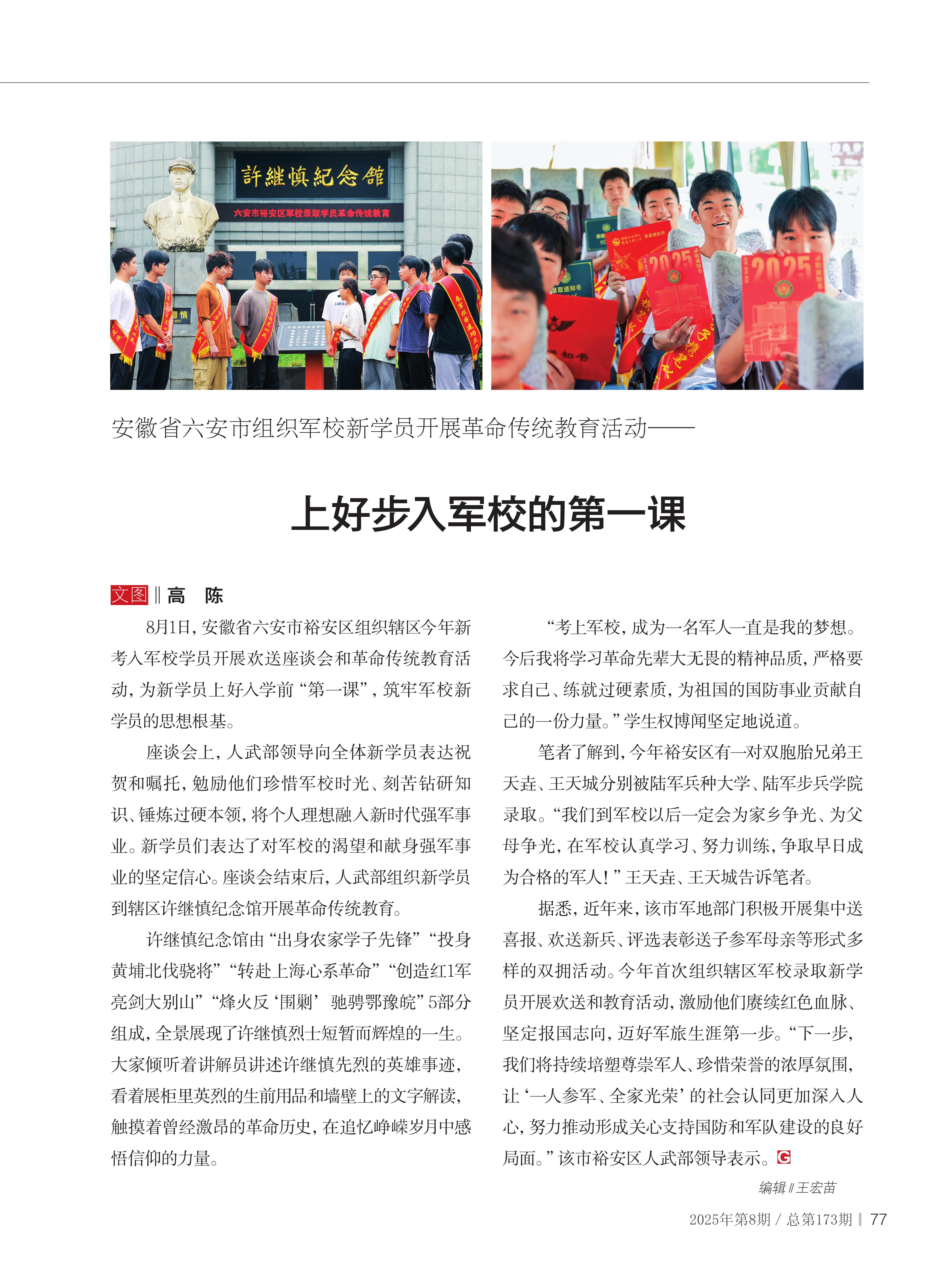 安徽省六安市组织军校新学员开展革命传统教育活动——