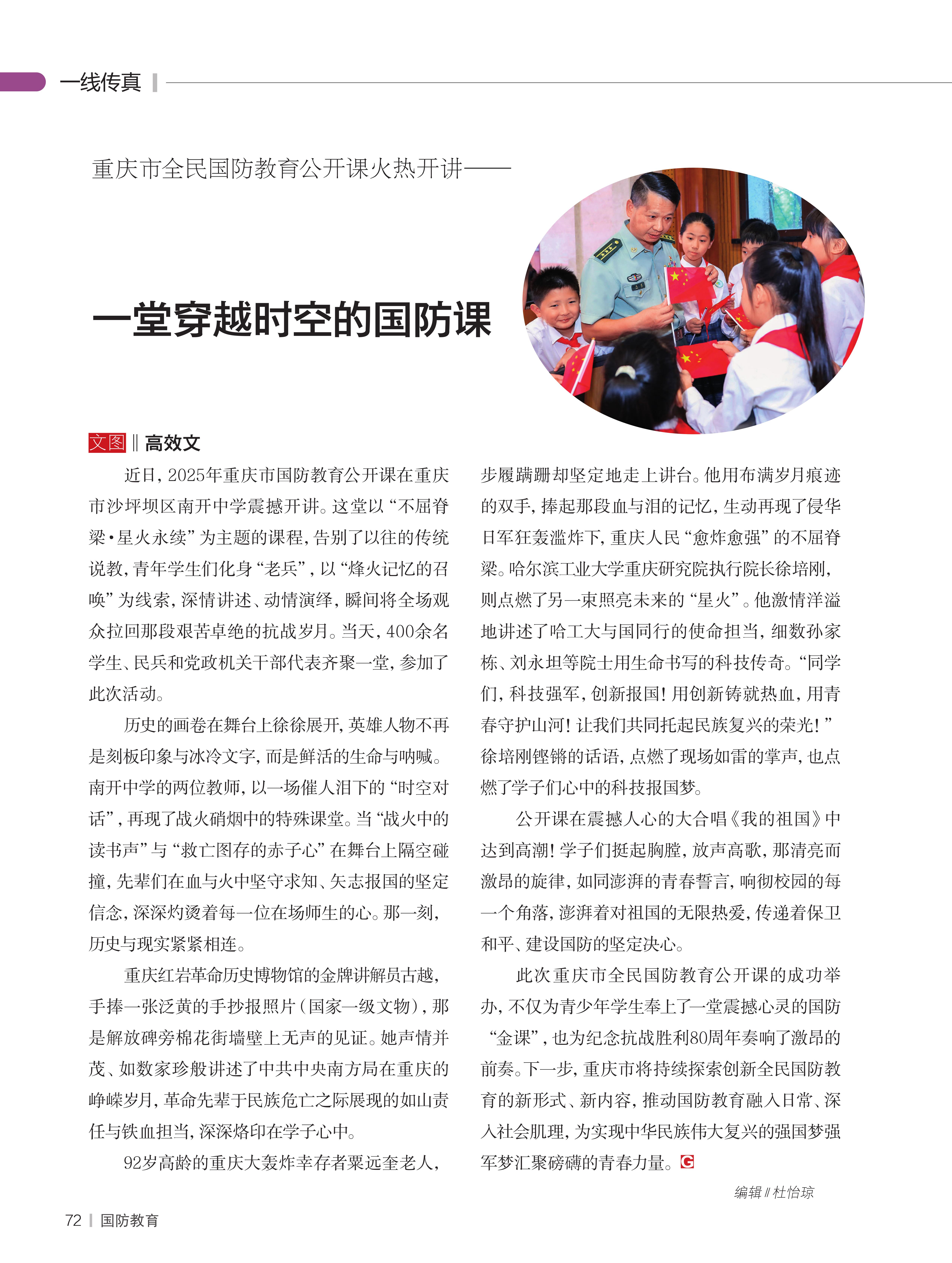 重庆市全民国防教育公开课火热开讲——