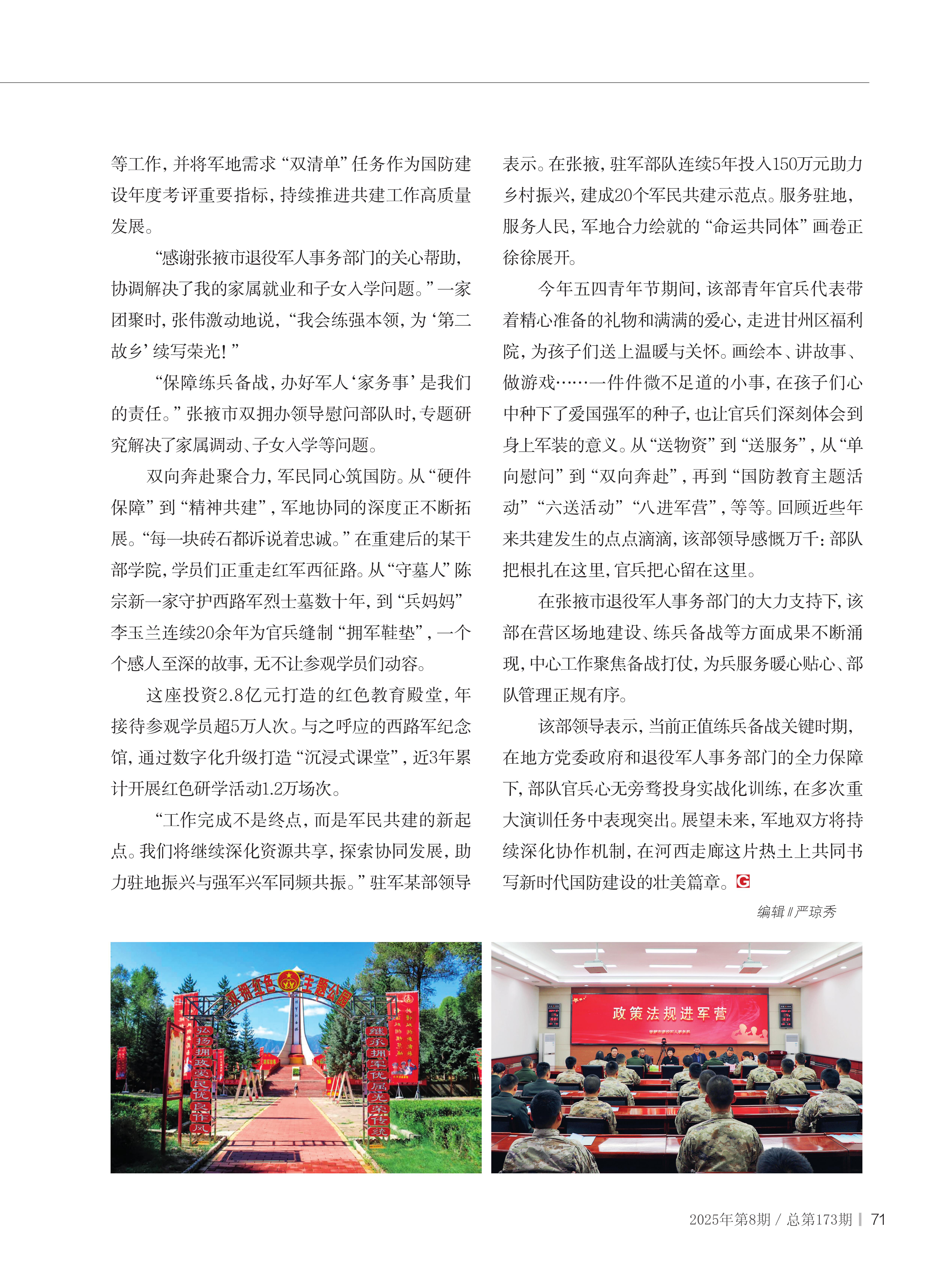 ——甘肃省张掖市军地合力绘就新时代国防建设新图景
