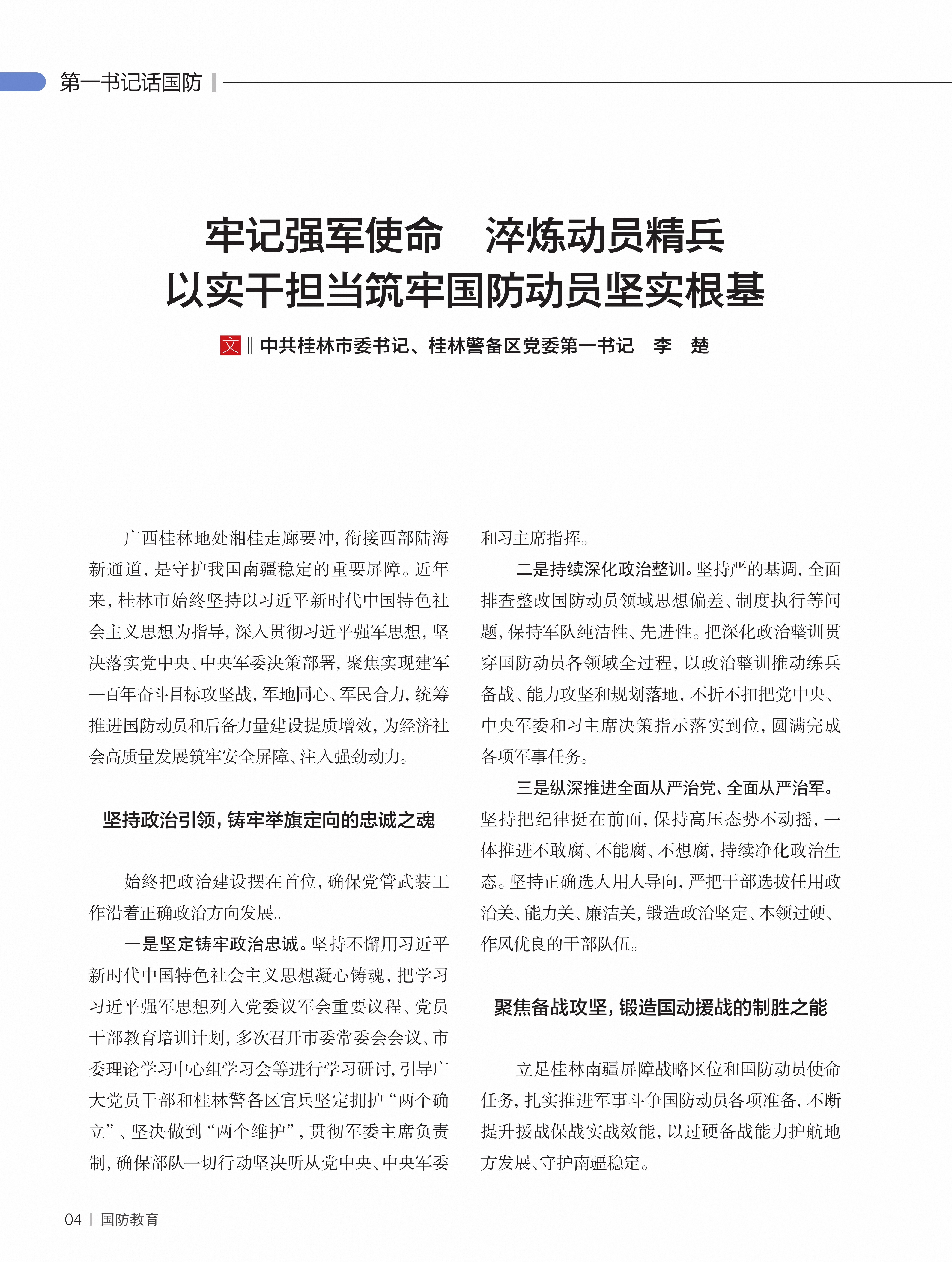 作者:中共桂林市委书记 桂林警备区党委第一书记  李 楚