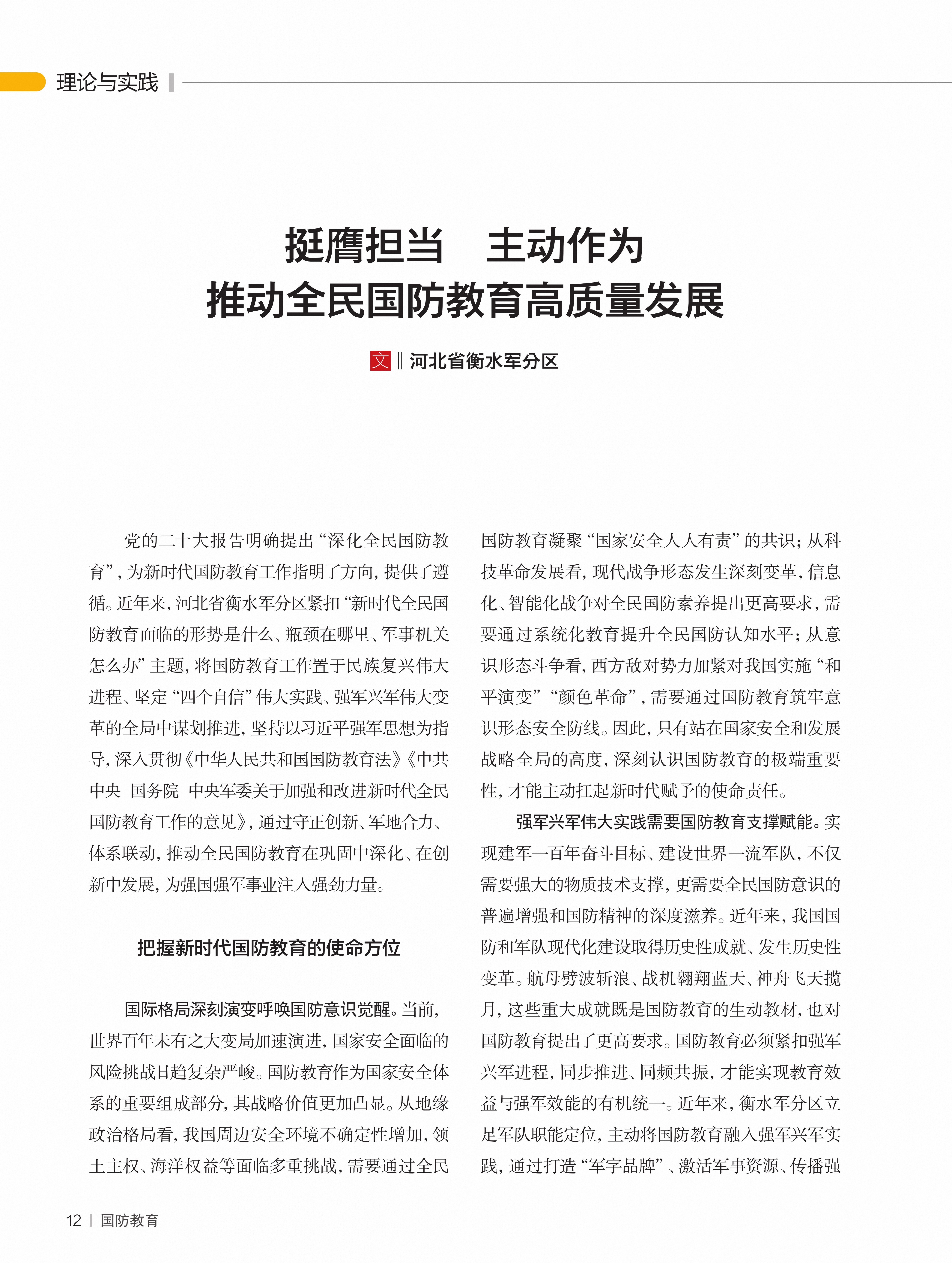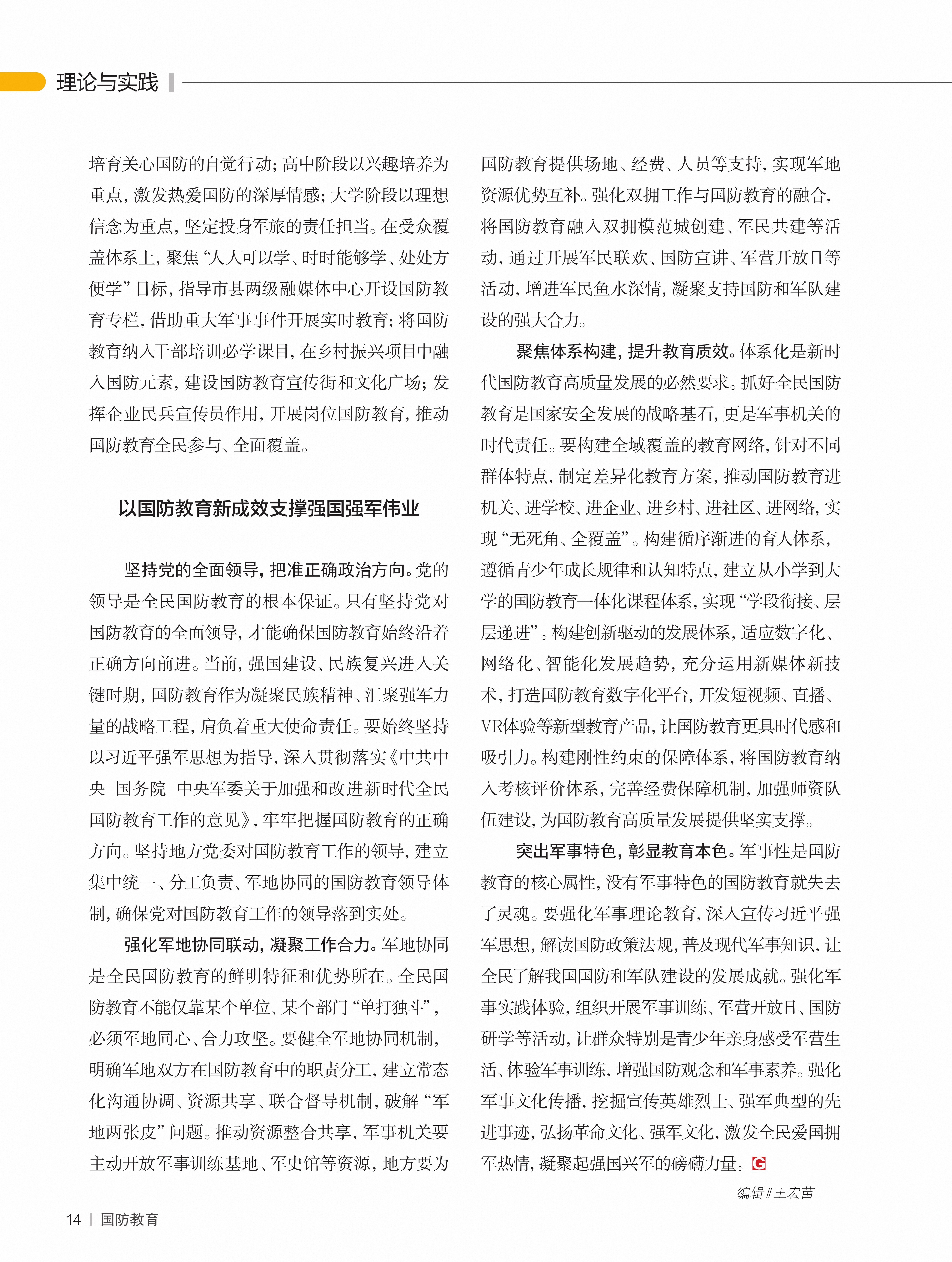 推动全民国防教育高质量发展