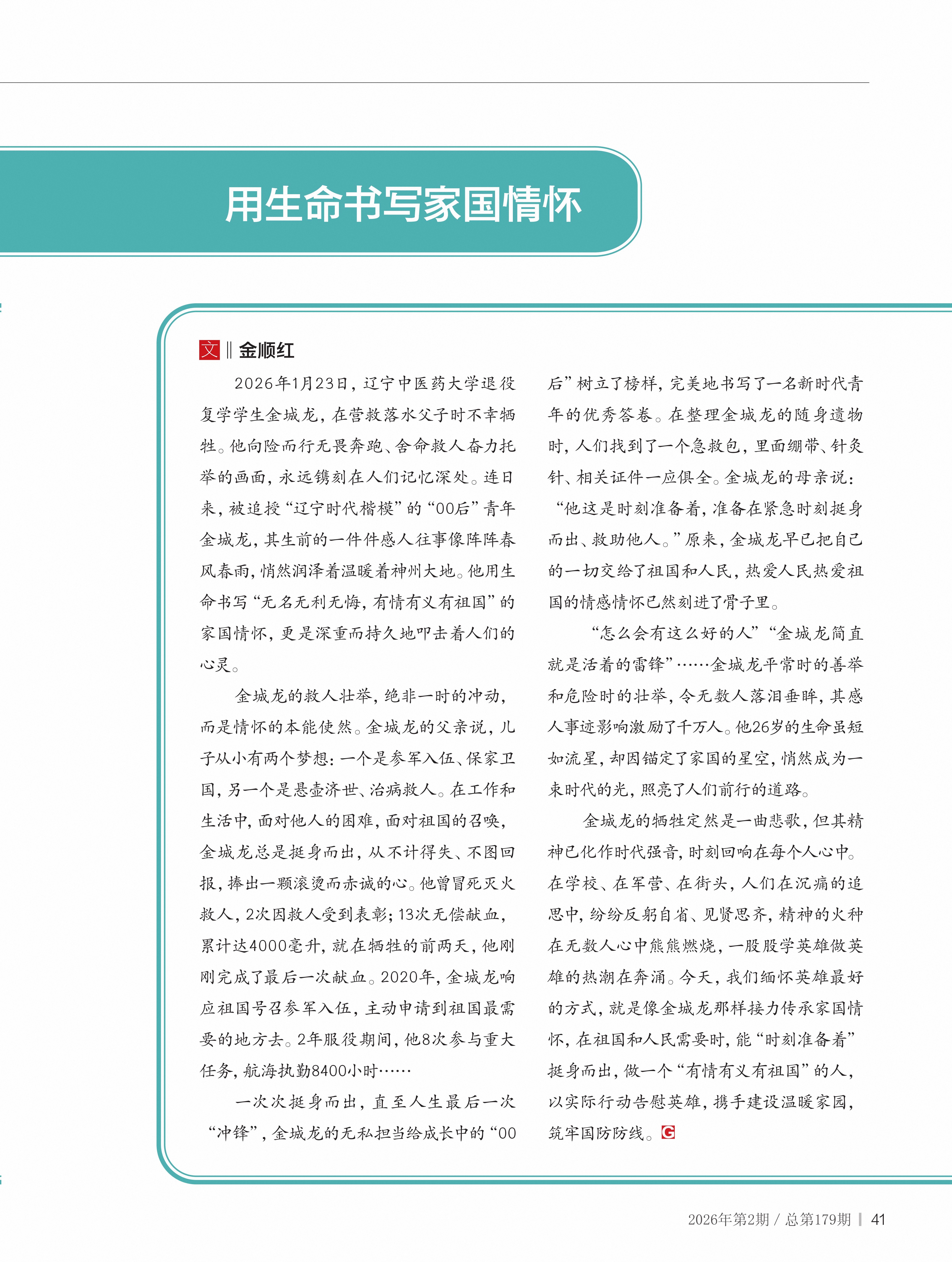 用生命书写家国情怀