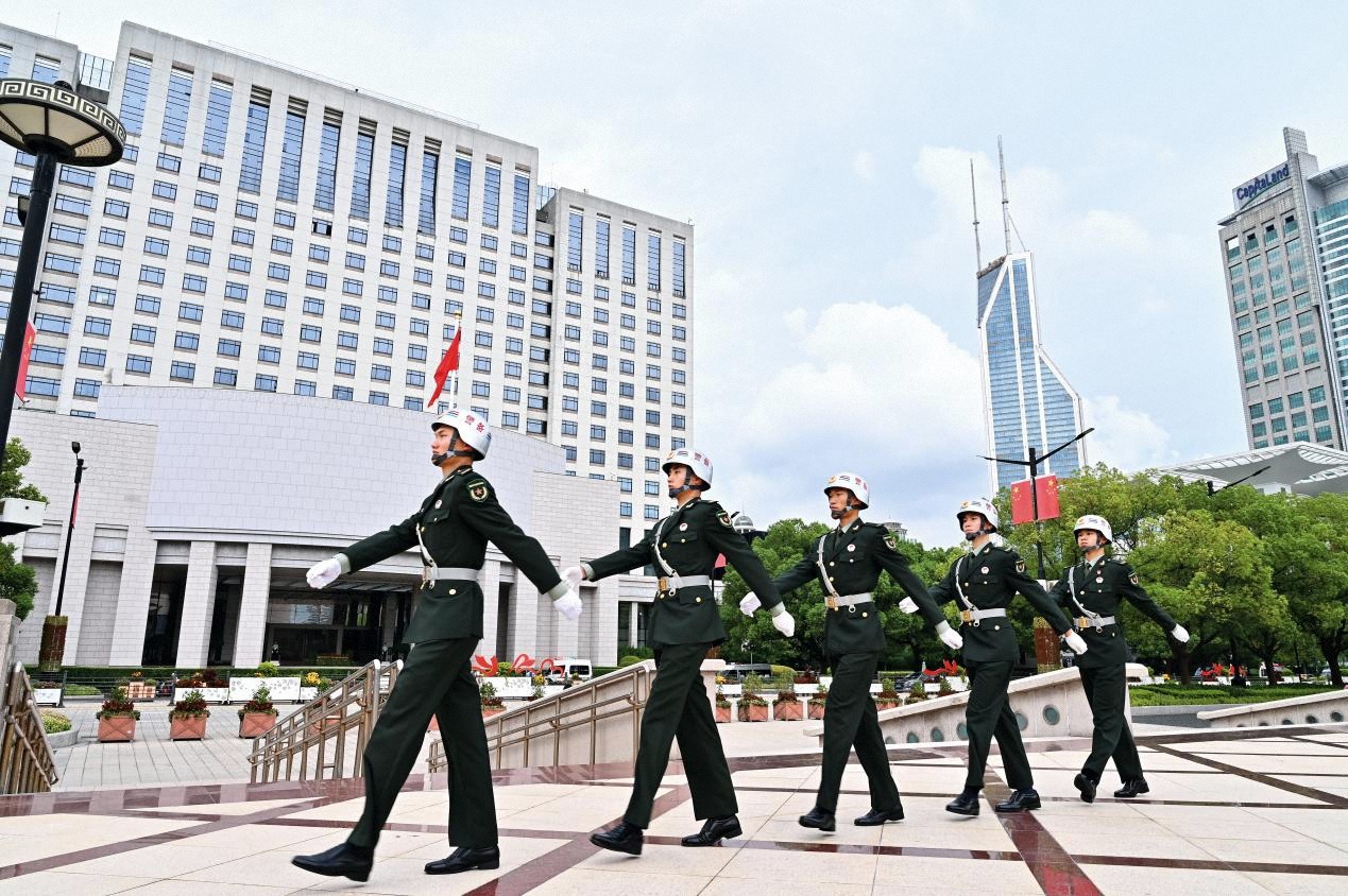 为何要在黄浦江畔执勤?中队长王基晓向记者介绍:“黄浦江畔两侧多为旅游景点,人流车流汇集,是警备纠察重要的点位。在这里设置执勤点位,既便于维护军容风纪、军车运行秩序和交通安全,又能让游客更有安全感。”