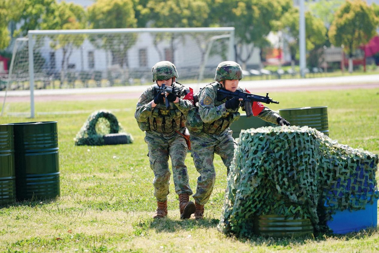 上海警备区警备纠察队一中队组织官兵进行战术训练。