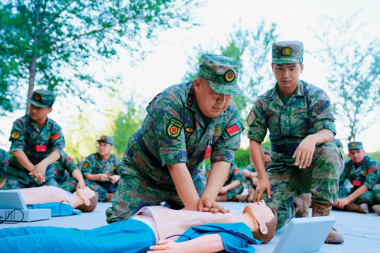 新疆军区组织专武干部进行心肺复苏课目训练。