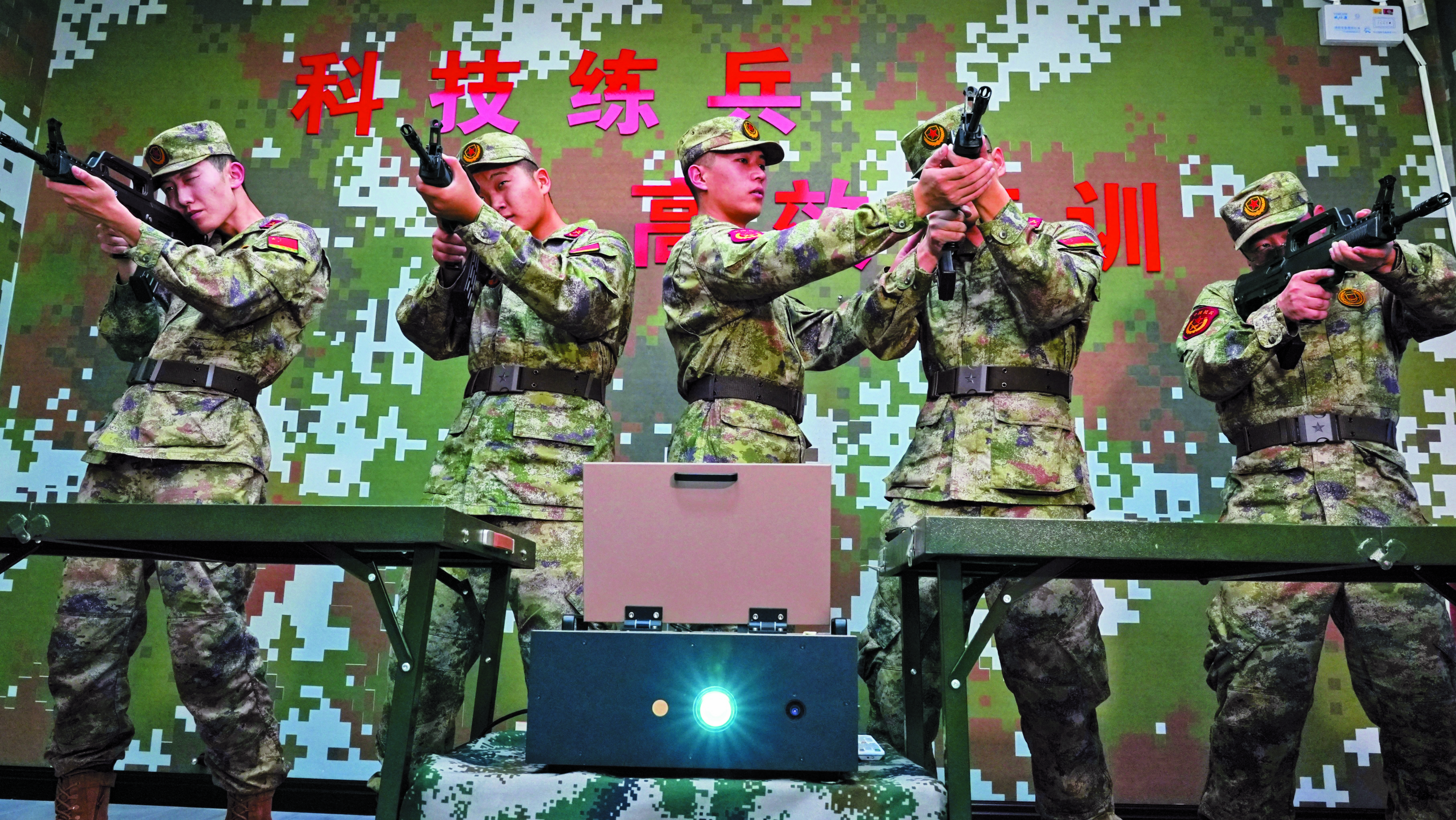 正定县民兵应急分队民兵正在进行轻武器模拟射击训练。(摄影/刘庆风)