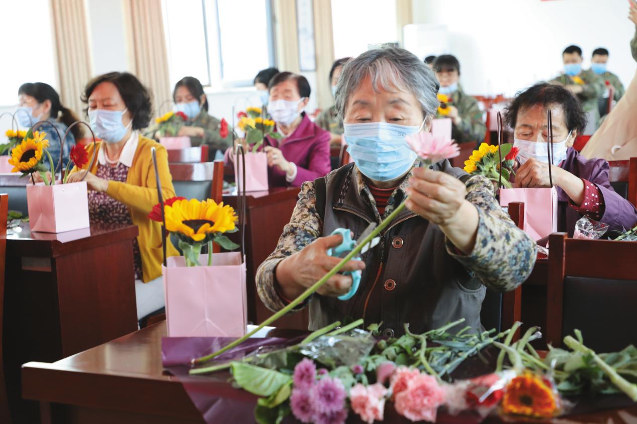 济南第二退休干部休养所组织老阿姨们开展插花活动。