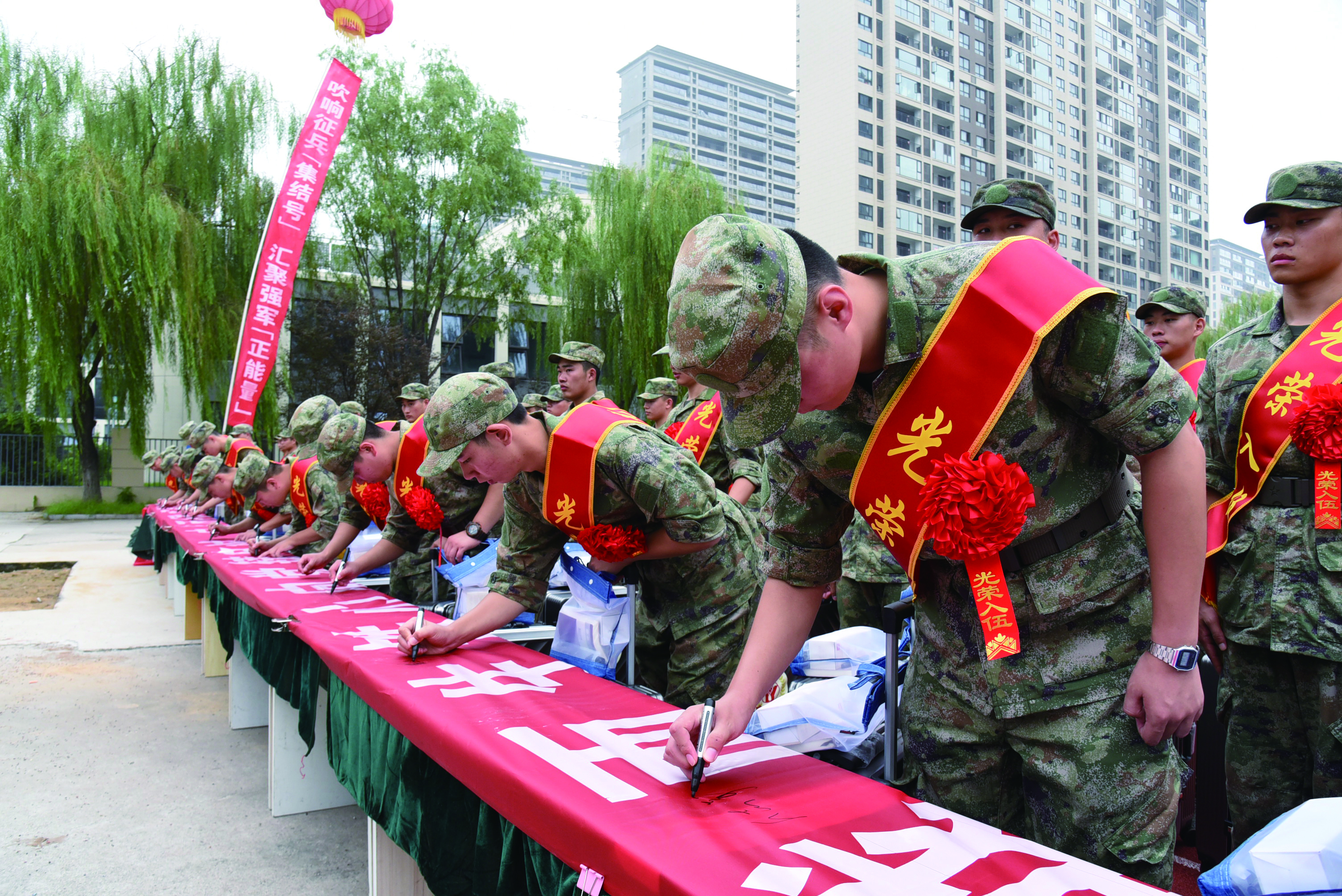 江苏省宿迁市军地联合组织新兵入伍欢送暨“国防教育进校园”活动。(摄影/沈 翔)
