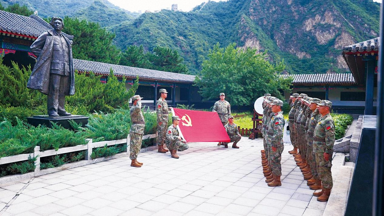 天津市蓟州区人武部组织盘山民兵连民兵党员到红色场馆开展重温入党誓词活动。