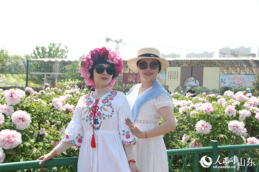 在菏泽市曹州牡丹园内,游客纷纷拍照留念。人民网记者 宋翠摄