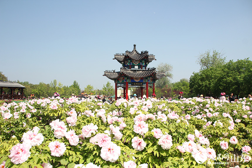 在菏泽市曹州牡丹园内,牡丹花盛开迎客来。人民网记者 宋翠摄