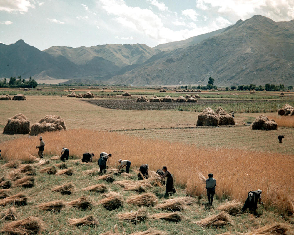 1965年,堆龙德庆县(现为堆龙德庆区)南岗乡互助组组员们在收割庄稼。新华社记者 吴祖政 摄