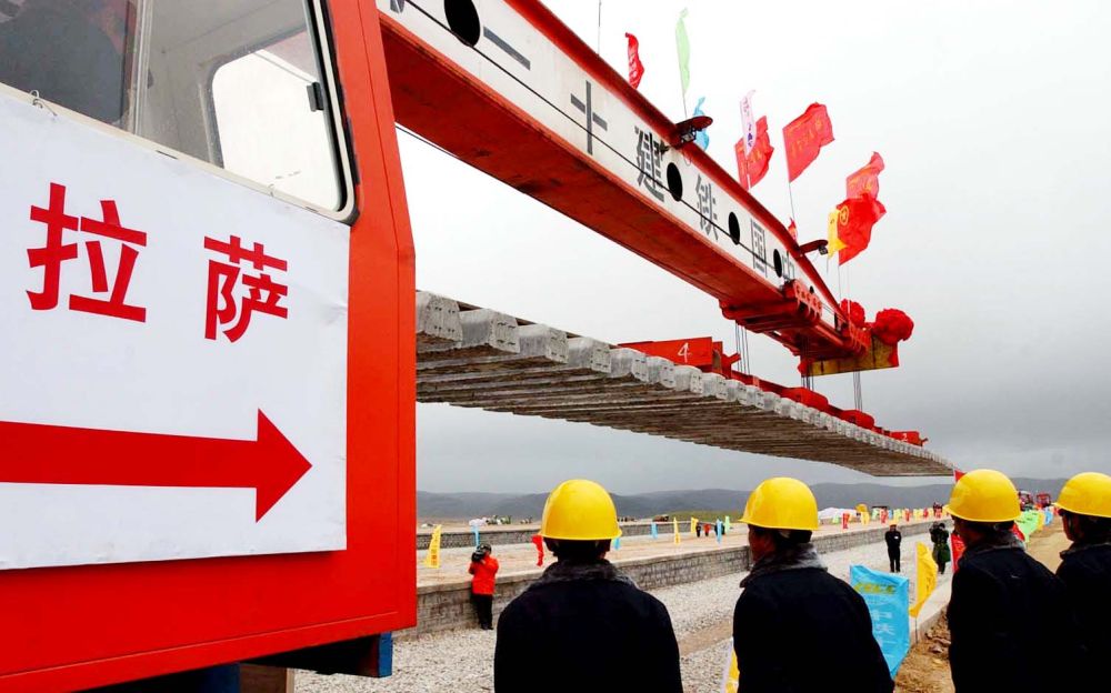 2004年6月22日,西藏第一段铁路轨排在安多火车站铺下。新华社记者 索朗罗布 摄