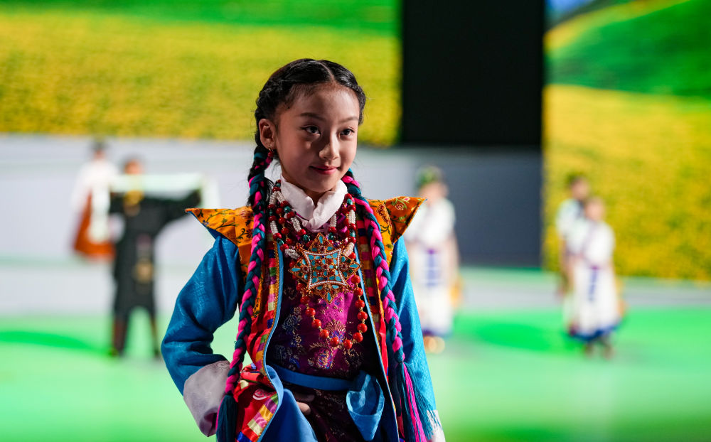2025年1月5日,首届西藏“衣脉相承”服饰文化周上小朋友展示藏式童装。新华社记者 晋美多吉 摄