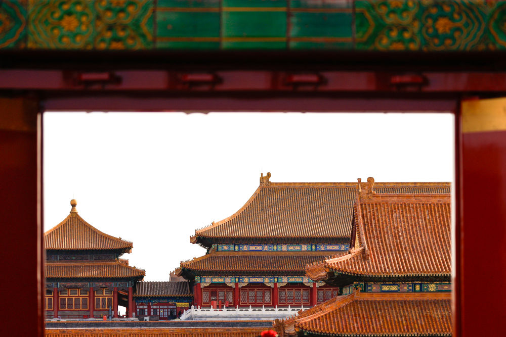 2025年/纪念中国人民抗日战争暨世界反法西斯战争胜利80周年大会在北京隆重举行,空中护旗梯队与故宫“同框”/摄影:王婧嫱