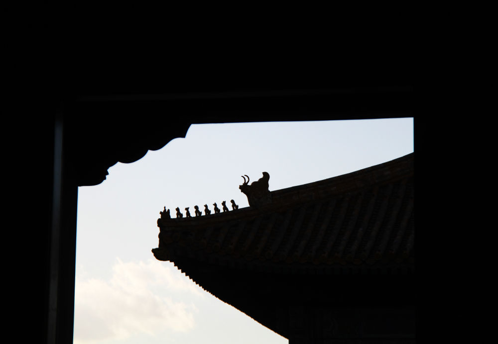 2019年/故宫角楼上的骑凤仙人、圆月与红灯笼/摄影:金良快