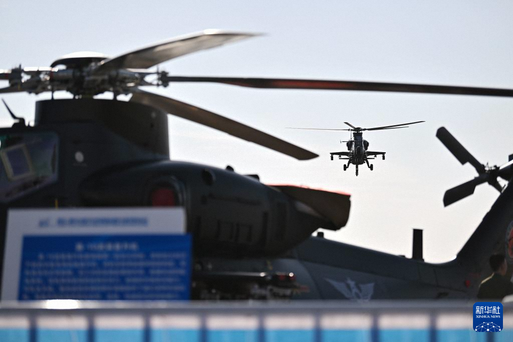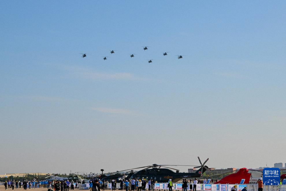 10月14日,参加飞行表演的直升机进行演练。新华社记者 孙凡越 摄