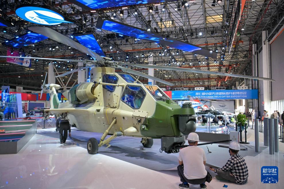 10月14日在天津直博会直升机馆内拍摄的直升机模型。新华社记者 孙凡越 摄