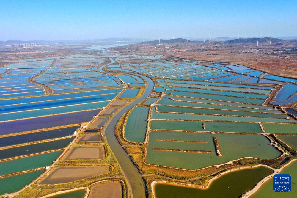 11月10日拍摄的山东省青岛市即墨区金口镇丁字湾海域养殖区(无人机照片)。新华社发(梁孝鹏 摄)