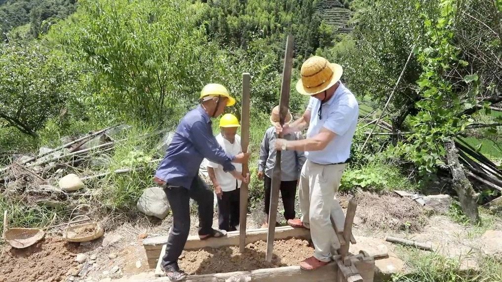 夯筑的过程,更是一场“力与美”的协作。过去没有大型机械,工匠们全靠人力,用木制的“夯杵”一层层夯打。每一层土铺好后,四五个工匠分站四方,喊着整齐的号子,将夯杵高高举起,再重重砸下,直到土层紧实得用钉子都难以钉入。