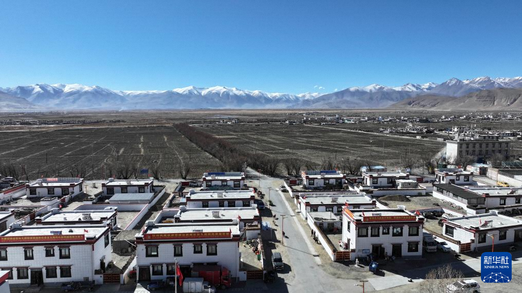 珠穆朗玛峰脚下的西藏定日县措果乡野江村,靠近珠峰方向为建成并交付群众使用的新房(11月12日摄,无人机照片)。