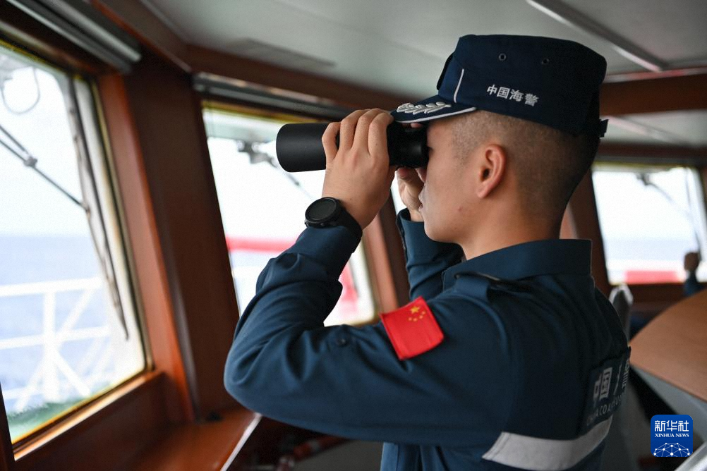 2月6日,中国海警万山舰执法员王弘在进行观察瞭望。新华社发(翟一凡摄)