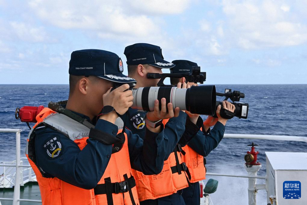 2月11日,中国海警万山舰执法员邱灿辉在进行维权取证训练。新华社发(翟一凡摄)