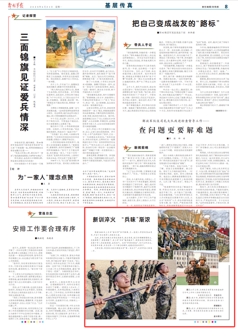 此时,当我们把镜头对准这批新兵,就会发现,他们的稚嫩慢慢褪去,皮肤晒黑了、体格强健了,身上的“兵味”越来越浓了,展现在我们面前的,是属于军人的坚毅果敢、血性虎气。这段“军营初体验”,有汗水和泪水,有欢笑和自豪,正是这样一个个难忘的瞬间,连缀成青春的样子。