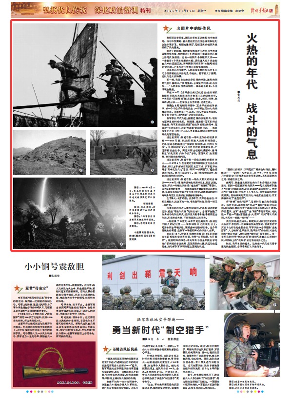 我军那些年代久远、画面泛黄的战地照片,堪称内蕴厚重的时光化石。硝烟里,浸漫着“刃不素持必致血指,舟不素操必致倾溺”的战争机理;弹雨中,蕴含着“平时多流汗,战时少流血”的制胜密码……那是战争岁月留下的不朽印记,更是崇高信仰与牺牲精神凝成的智慧结晶。