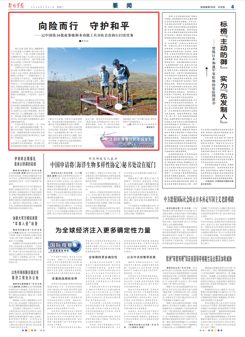中国军队始终是维护世界和平的坚定力量。维和官兵用实际行动践行“蓝盔”使命,在异国他乡的土地上书写着和平篇章。未来一年,分队官兵将持续推进扫雷任务,进一步清除区域内的地雷遗患,践行“忠实履行使命、维护世界和平”的铮铮誓言。