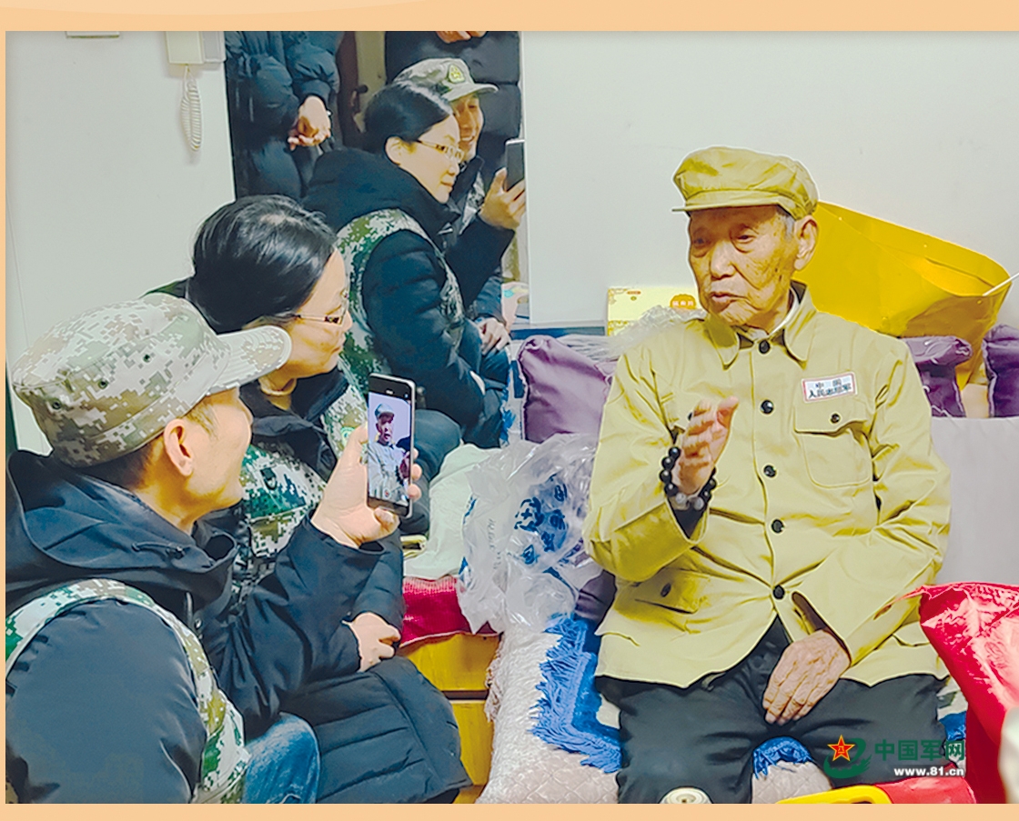 队员们为曾伏生送上新年礼物和节日祝福,并为他检查身体。“谢谢你们,一直记挂着我们这些老兵。”曾伏生眼泛泪光,“每次唱起这首歌,仿佛又回到那段战火硝烟的岁月。”